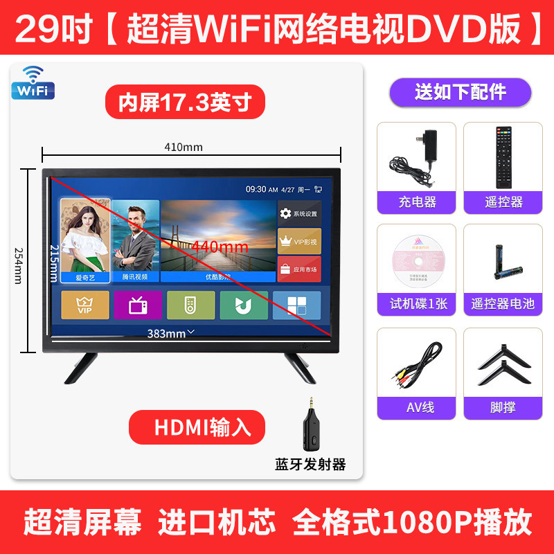 29inch [Сверхчеткая версия DVD полной четкости]; 29inch [Полноформатная версия DVD] + Bluetooth-передатчик; [Ультра-четкая версия с поддержкой WIFI, сетевого ТВ и DVD]; 29inch [Интернет-телевидение, DVD-версия] Bluetooth-передатчик; 29inch Проекция экрана мобильного телефона Интернет-телевидение Версия DVD; 29inch Мобильный экран проекционного телевизора DVD-версия Bluetooth-передатчик