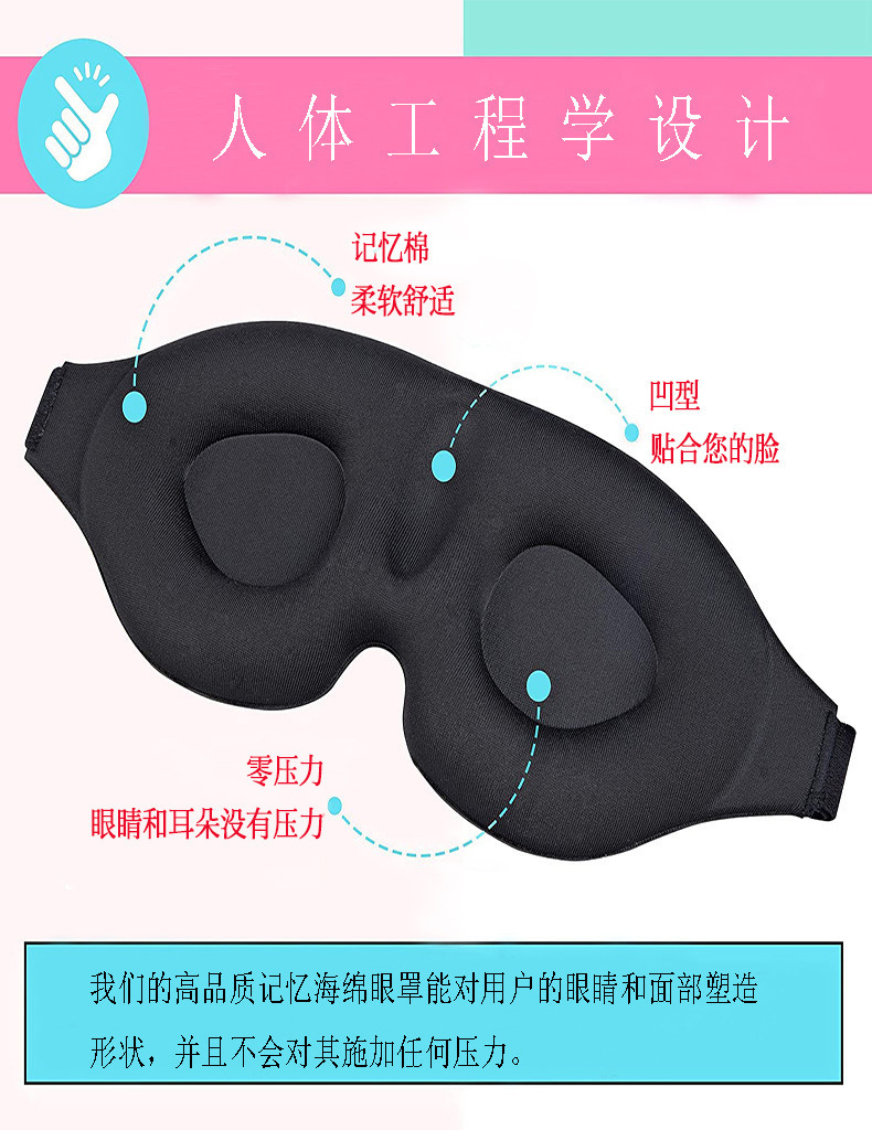 Прямые поставки с фабрики: 3D стерео маска для сна Amazon, артефакт для сна, пенополиуретан с эффектом памяти, черная, блокирующая свет, дышащая маска для защиты глаз.