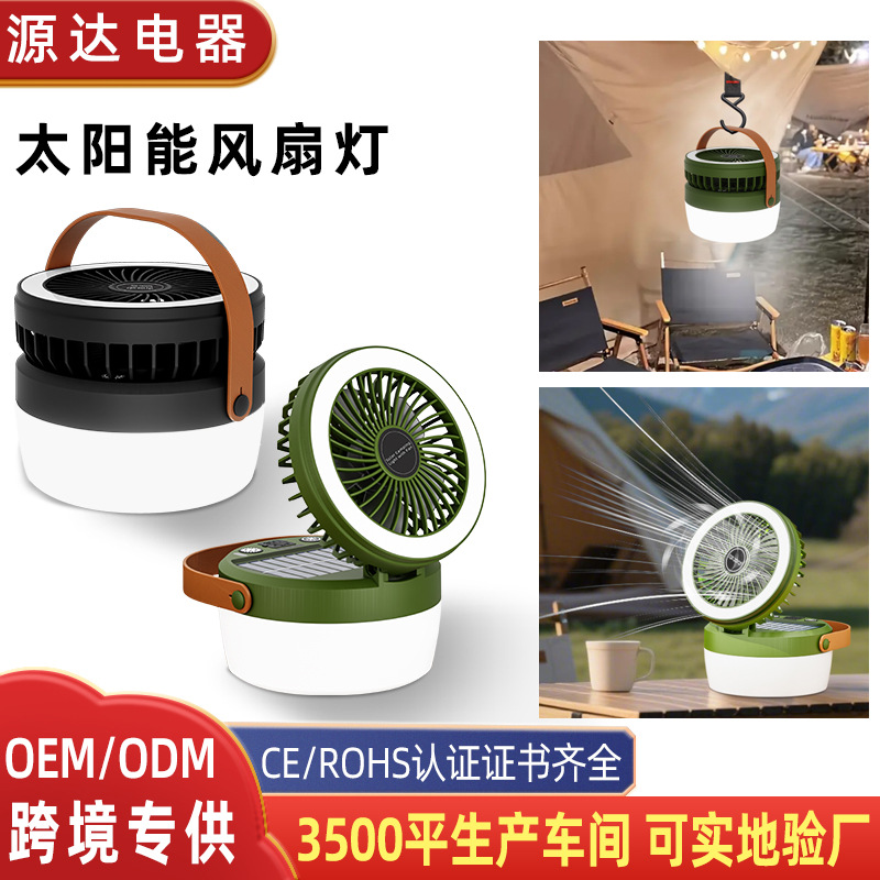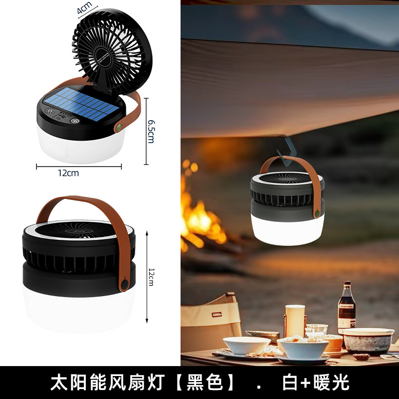 Солнечный вентилятор с фонарем для кемпинга [Военный зеленый] HG758; Солнечный вентилятор с фонарем для кемпинга [Черный] HG758/B