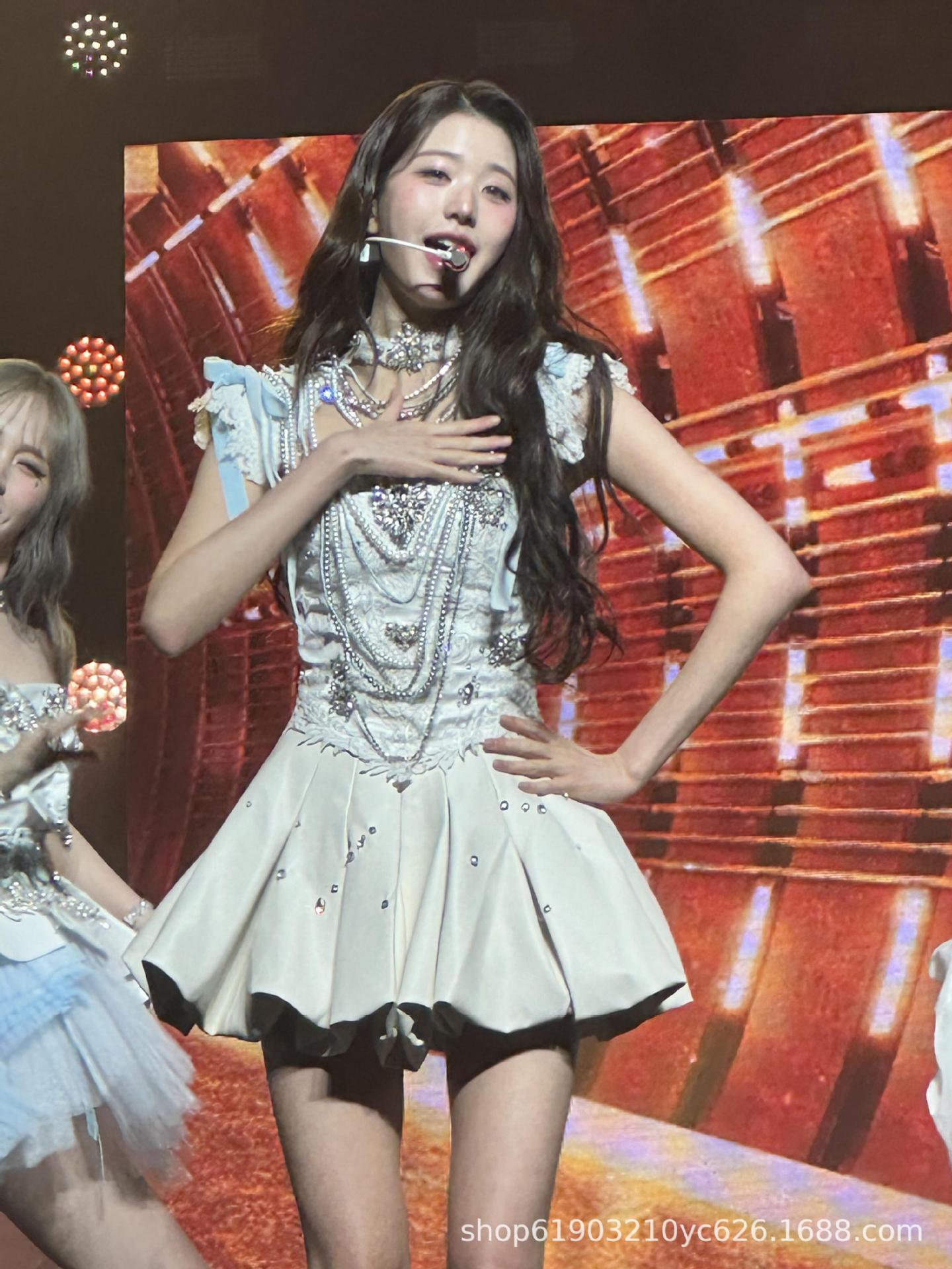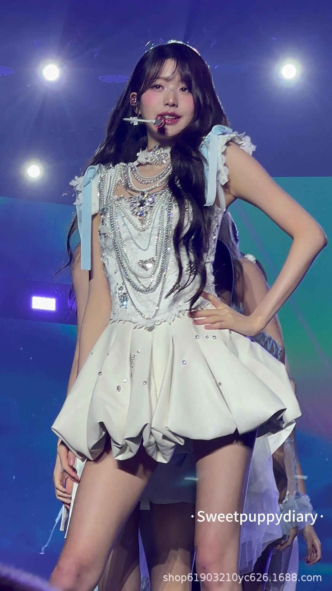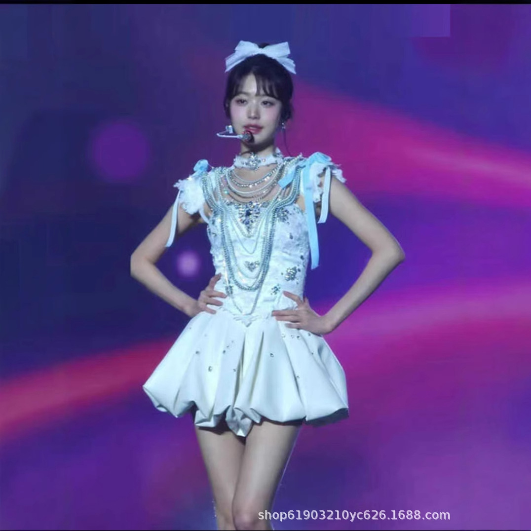 Костюм для танцев в одном стиле группы IVE Zhang Yuanying, сверхмощный костюм с бриллиантами, джазовый костюм, милое платье принцессы