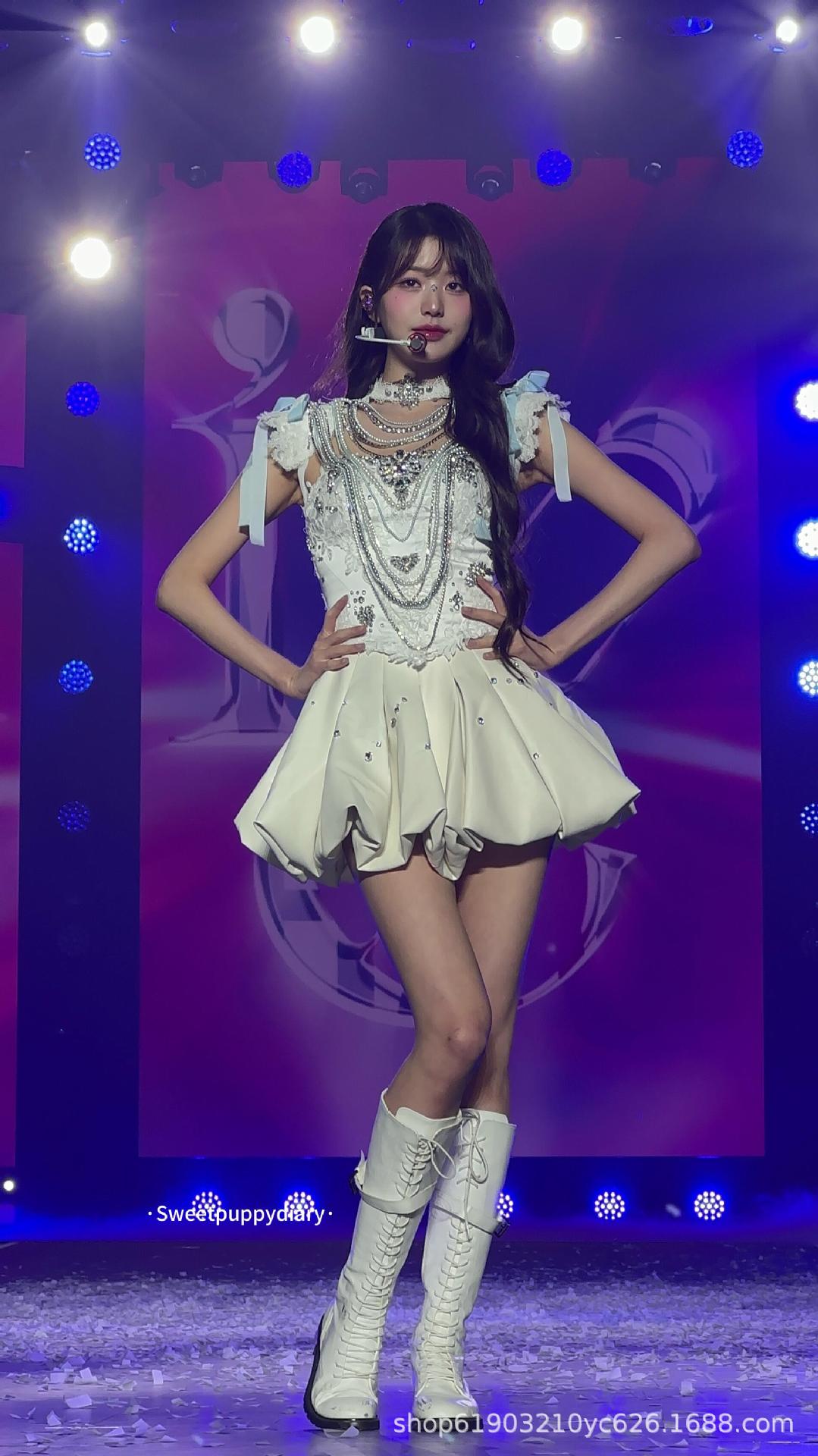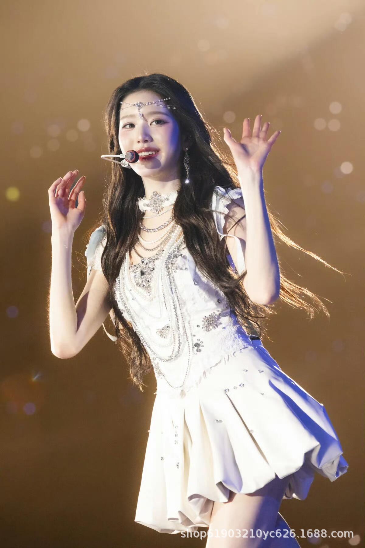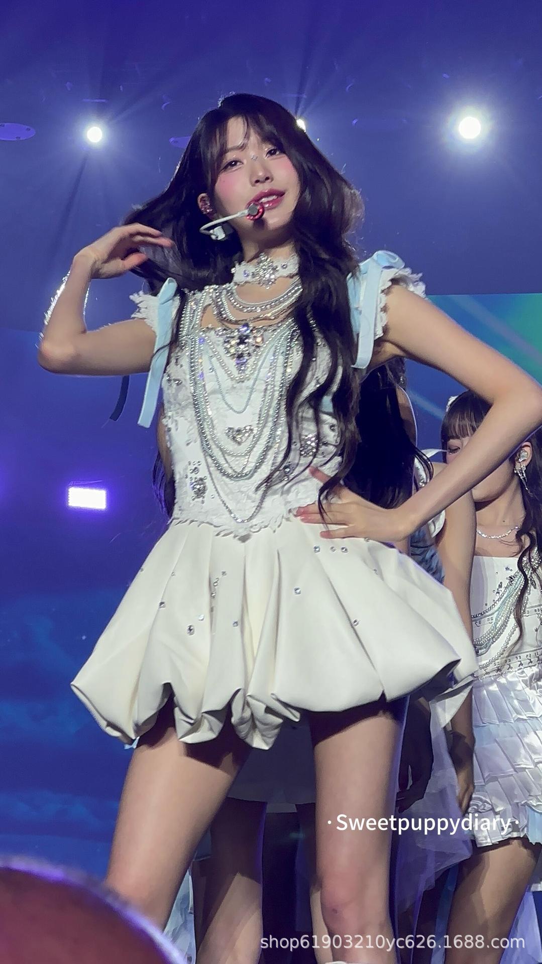 Костюм для танцев в одном стиле группы IVE Zhang Yuanying, сверхмощный костюм с бриллиантами, джазовый костюм, милое платье принцессы