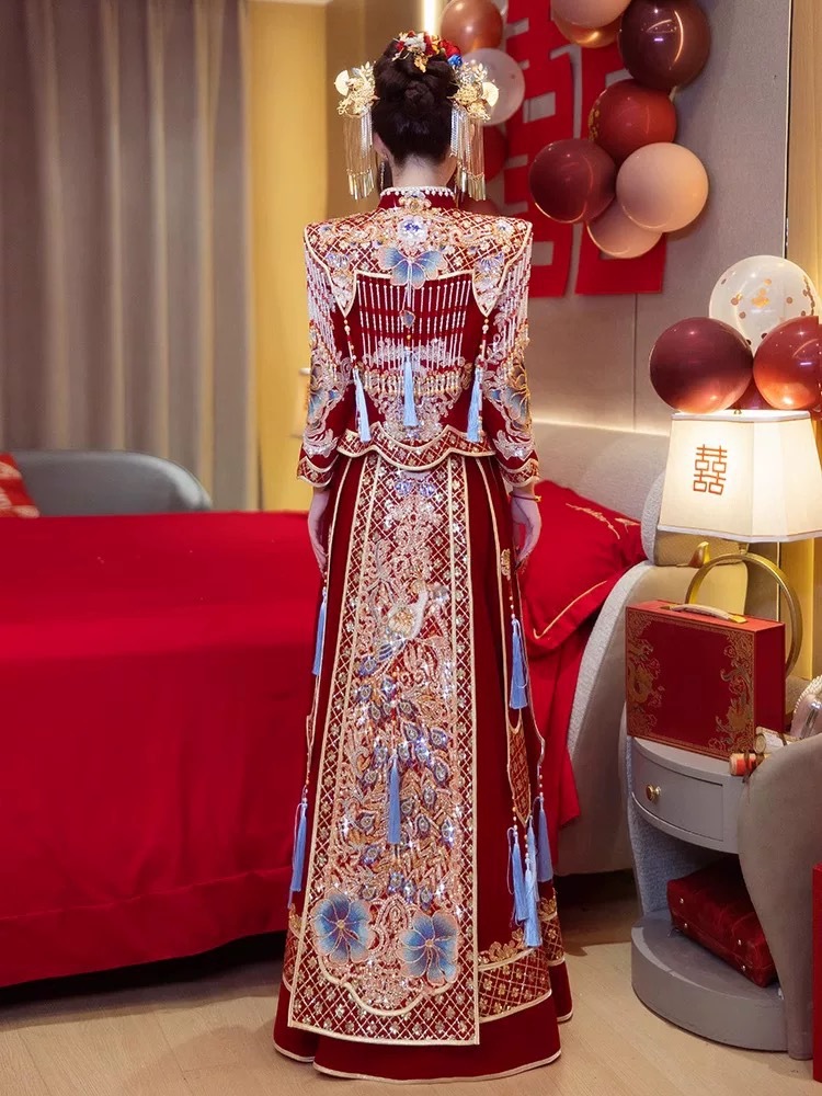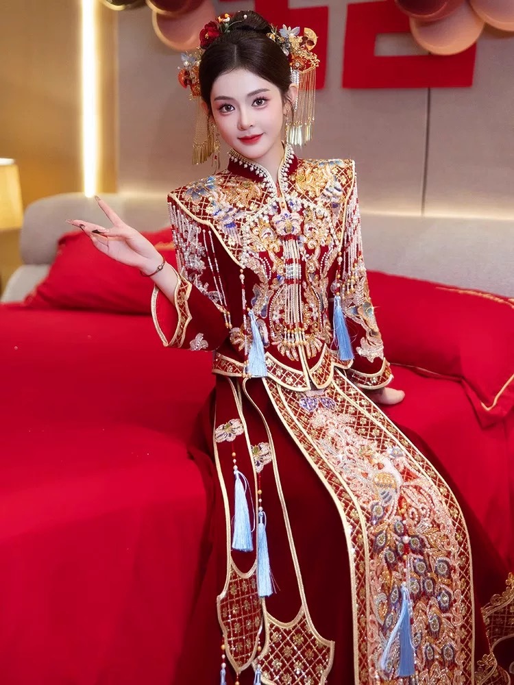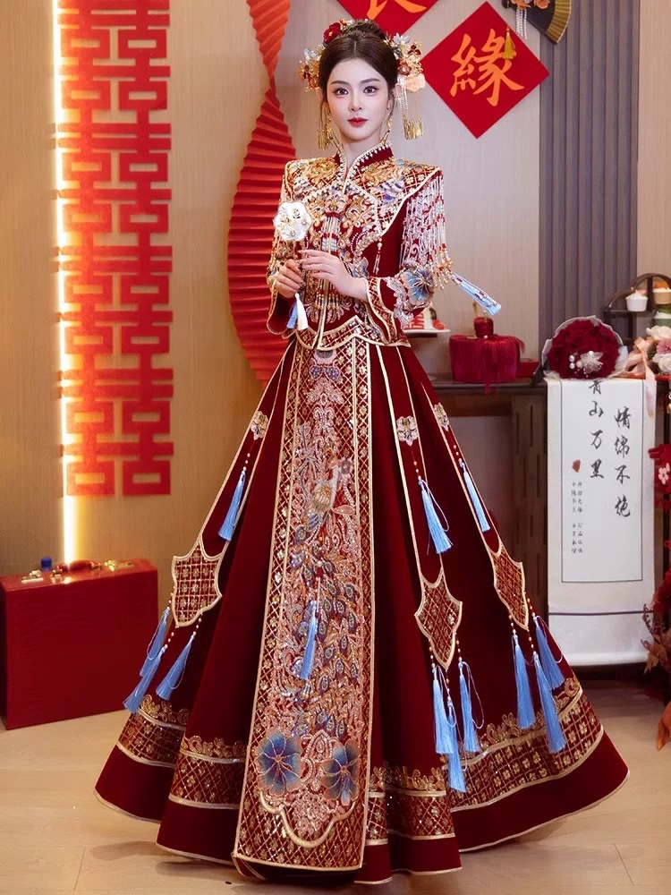 Большой размер бархатного шоу-костюма [Blue Ling] 2025 новое свадебное платье тяжелой промышленности выходит из свадебного платья