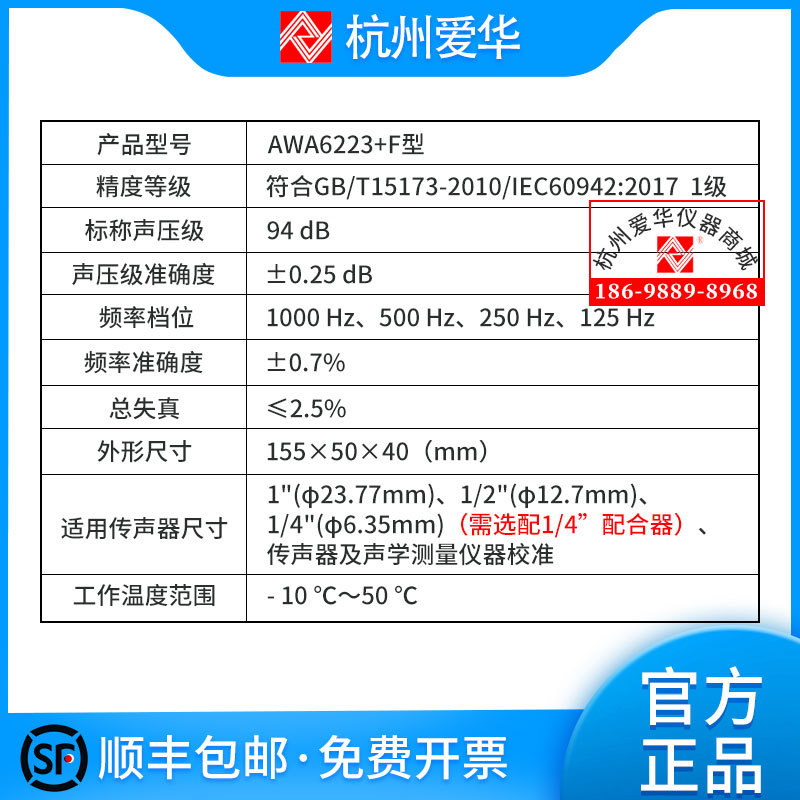 Калибратор уровня звука Hangzhou Aihua AWA6223+F, калибратор шумомера AWA6223F+ с 1 уровнем и 4 частотными точками