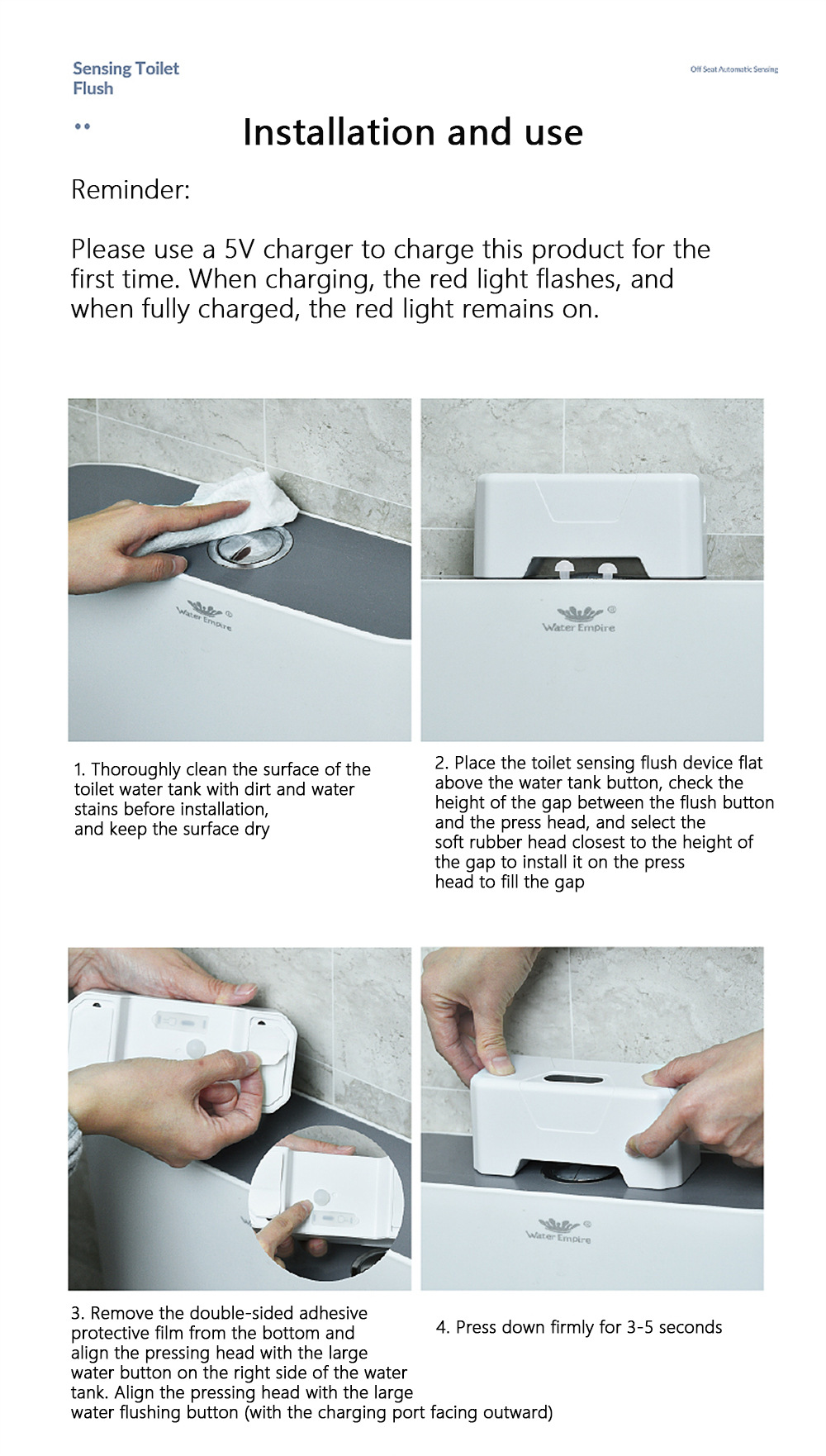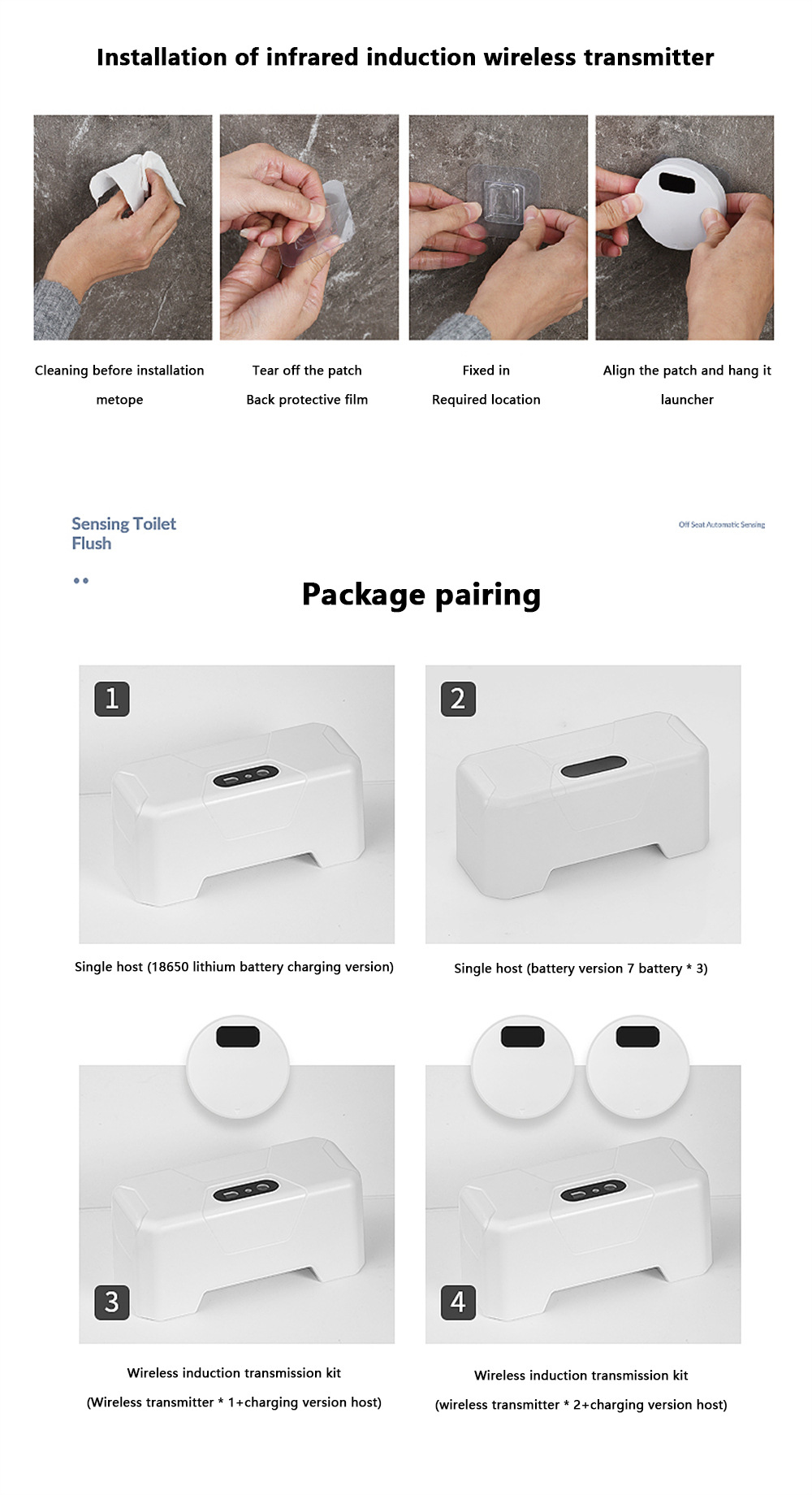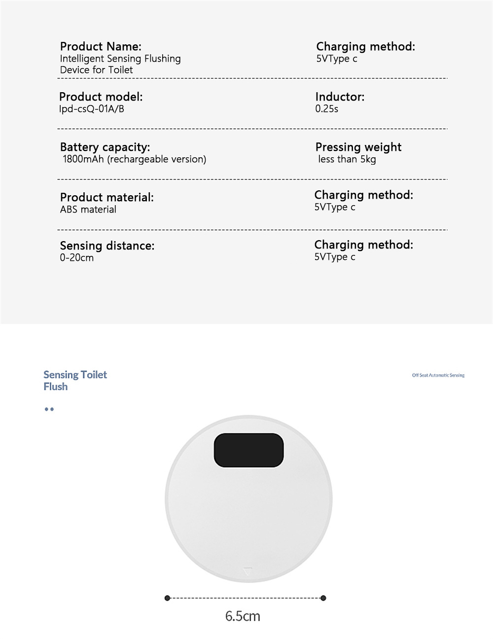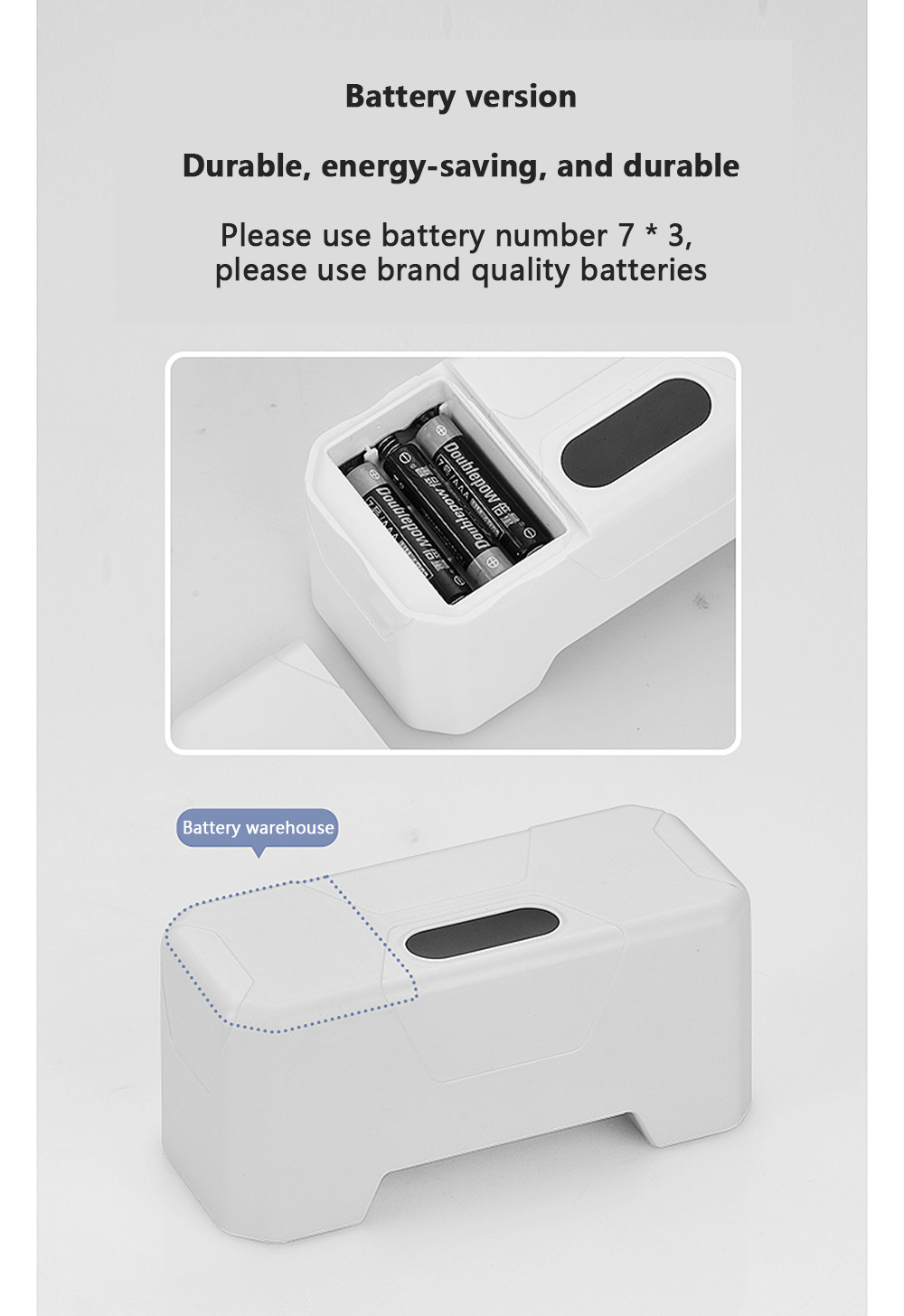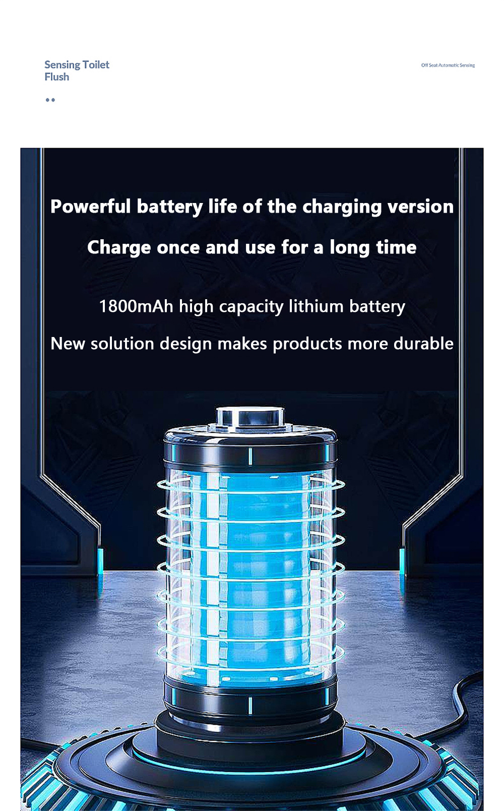 3.内置1800mAh电池:马桶冲洗套件内置1800mAhs电池,非接触式马桶冲洗助手一次充电即可长时间使用,无需频繁充电。