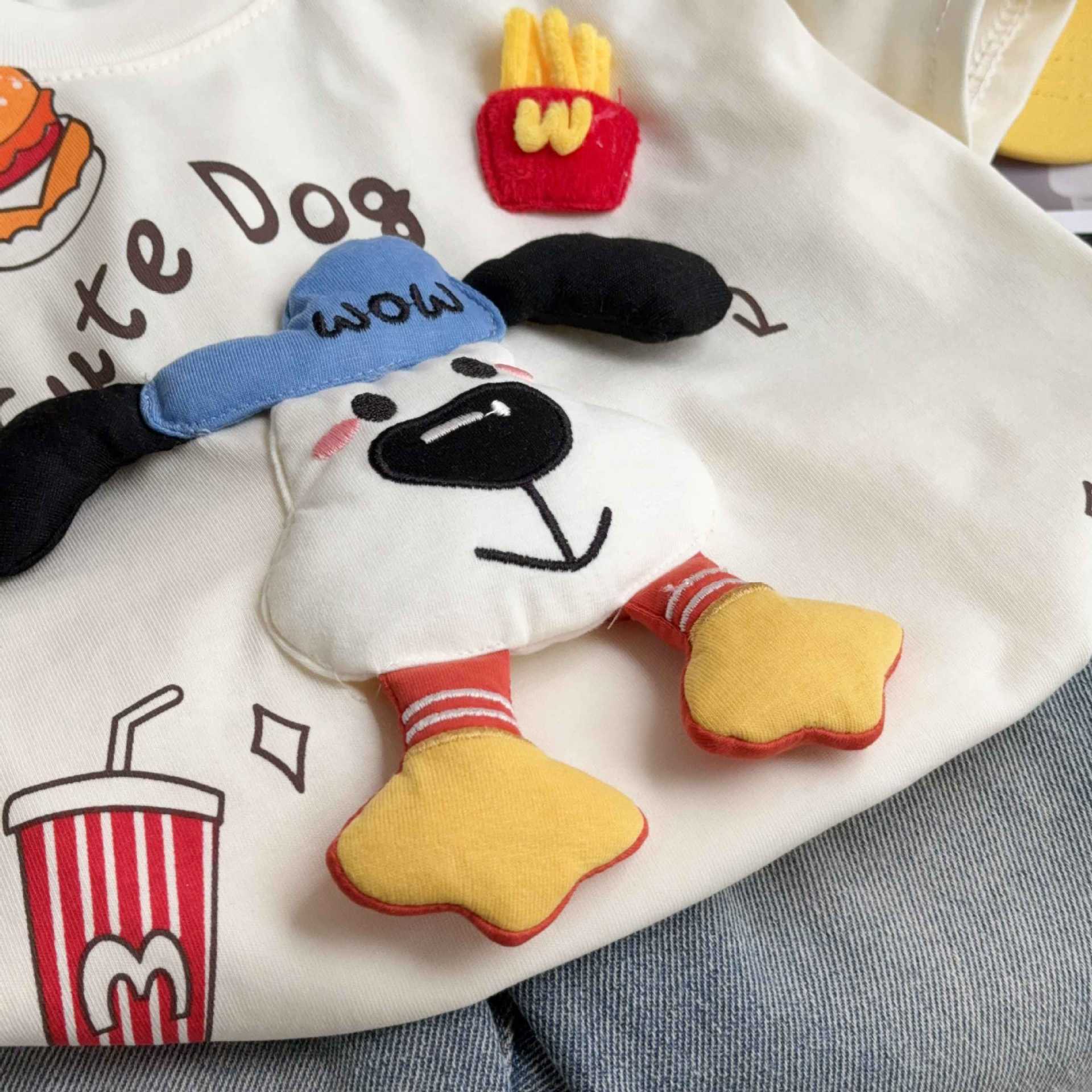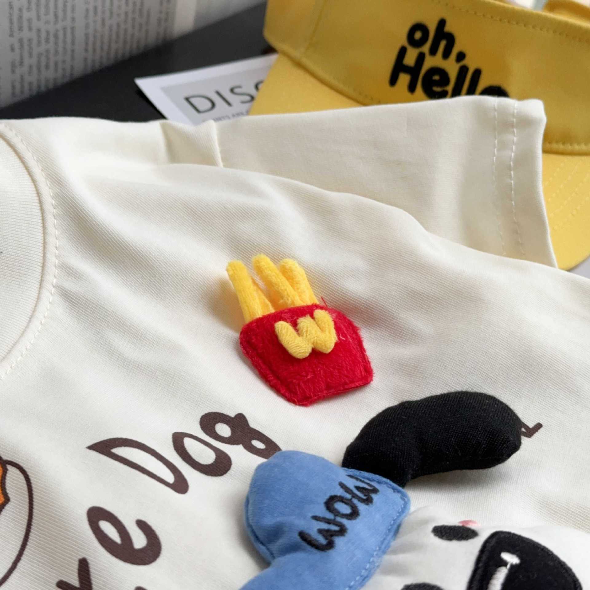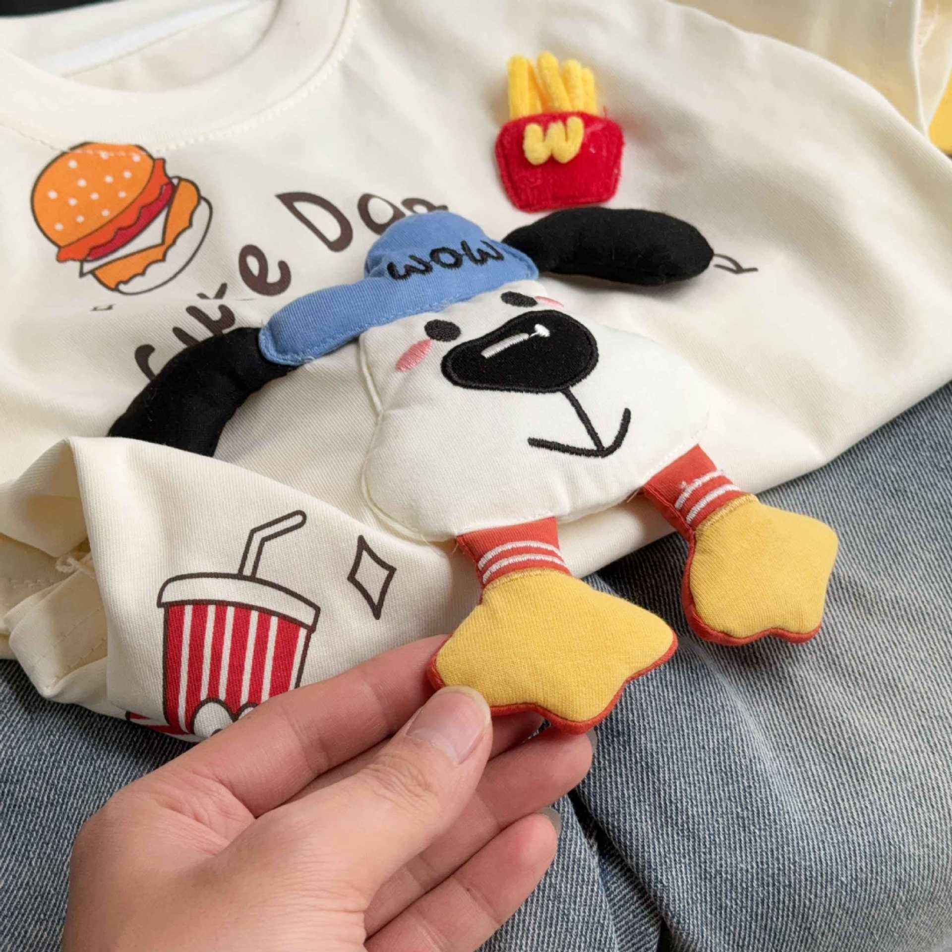 Детская футболка с короткими рукавами для мальчиков и девочек летом тонкая милая трехмерная кукла с половиной рукава сокровище родитель-ребенок хлопчатобумажная рубашка с круглым вырезом