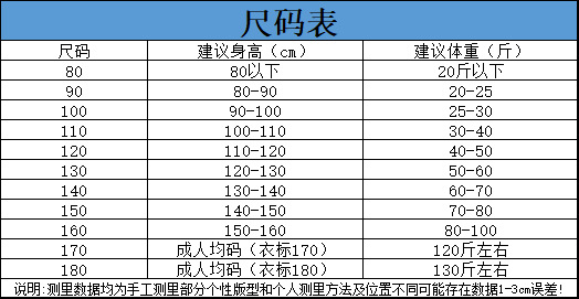 110码建议身高100-110体重40斤