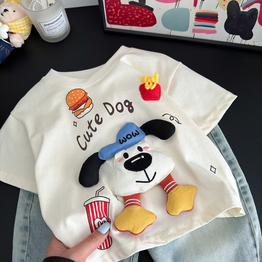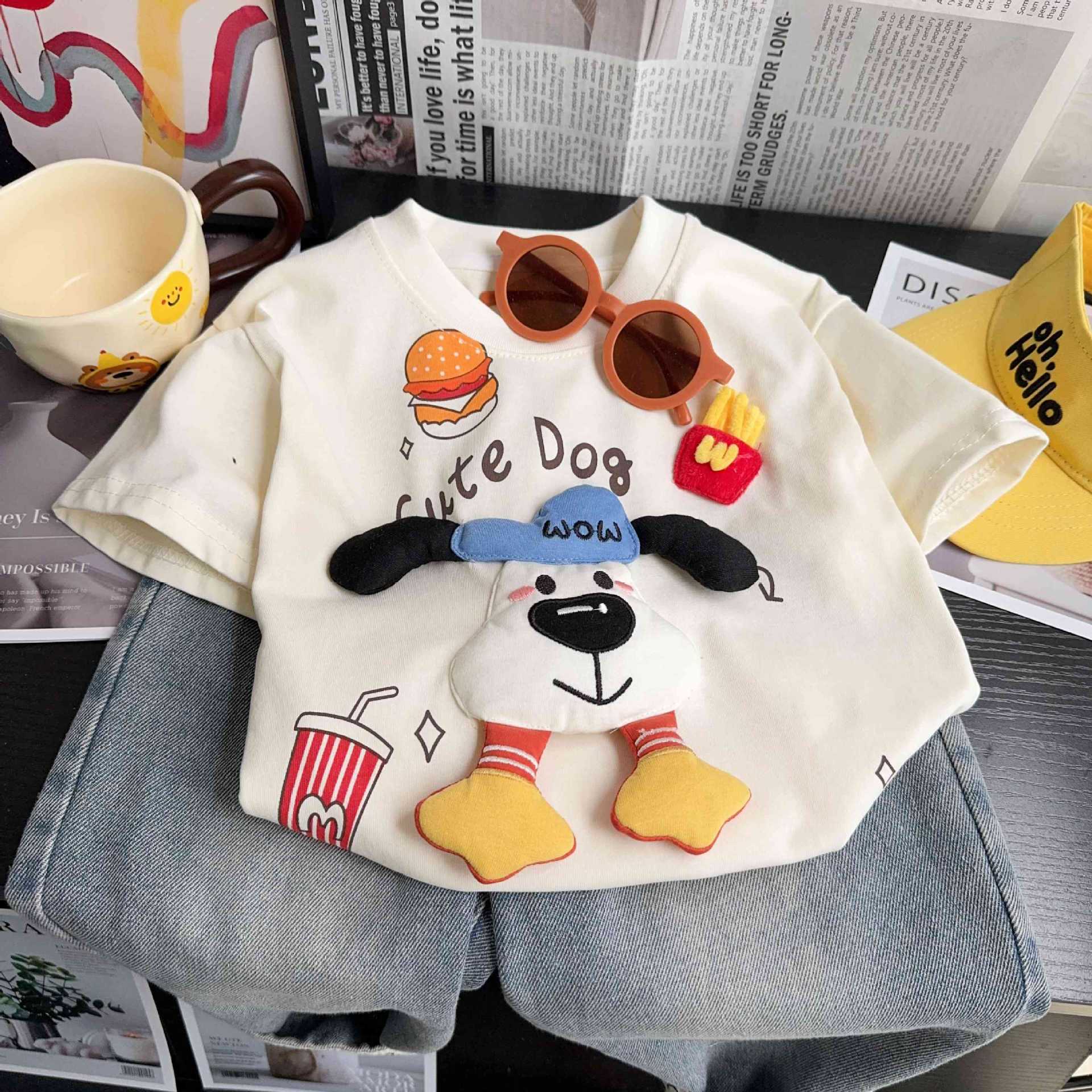 Крутой щенок с короткими рукавами-бежевого цвета