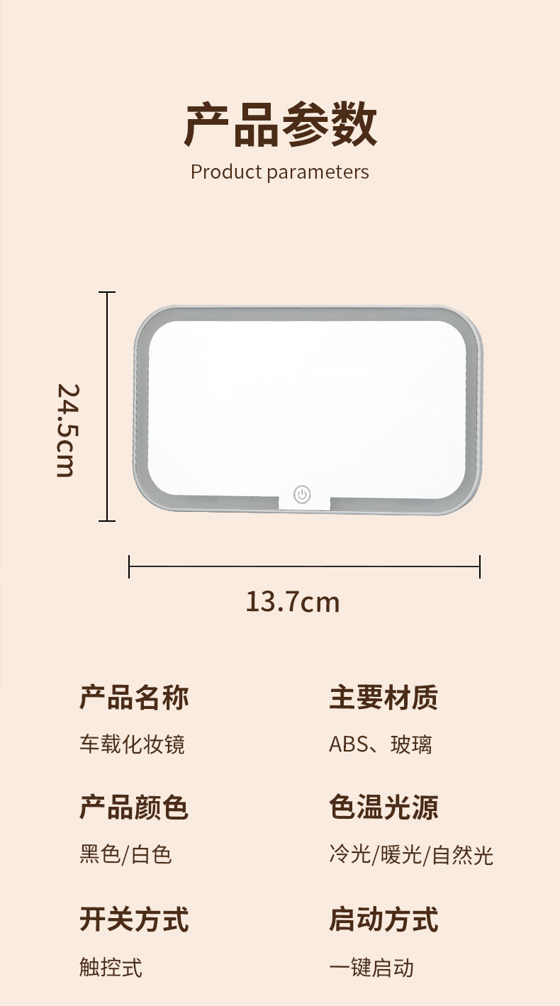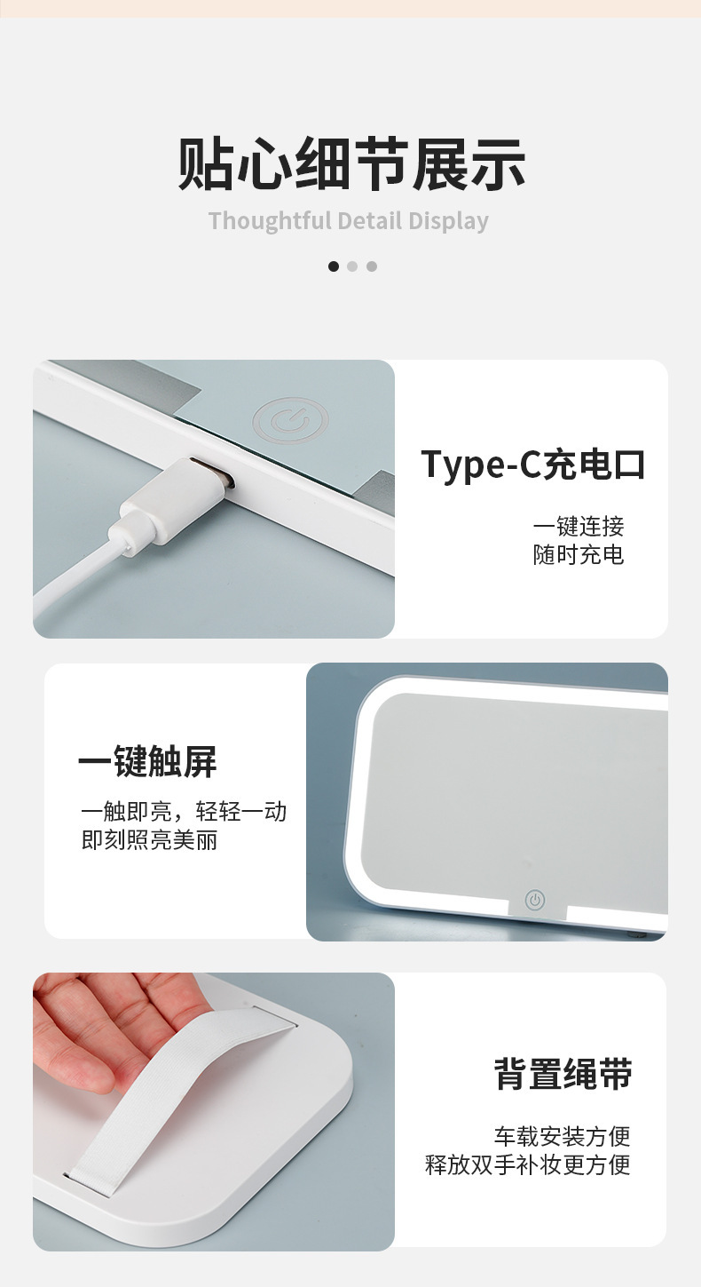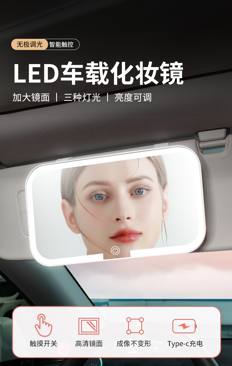 Автомобильное умное зеркало для макияжа с трехскоростной регулировкой, зеркало высокой четкости, портативное светодиодное зеркало для макияжа, косметическое зеркало, пассажирский светильник
