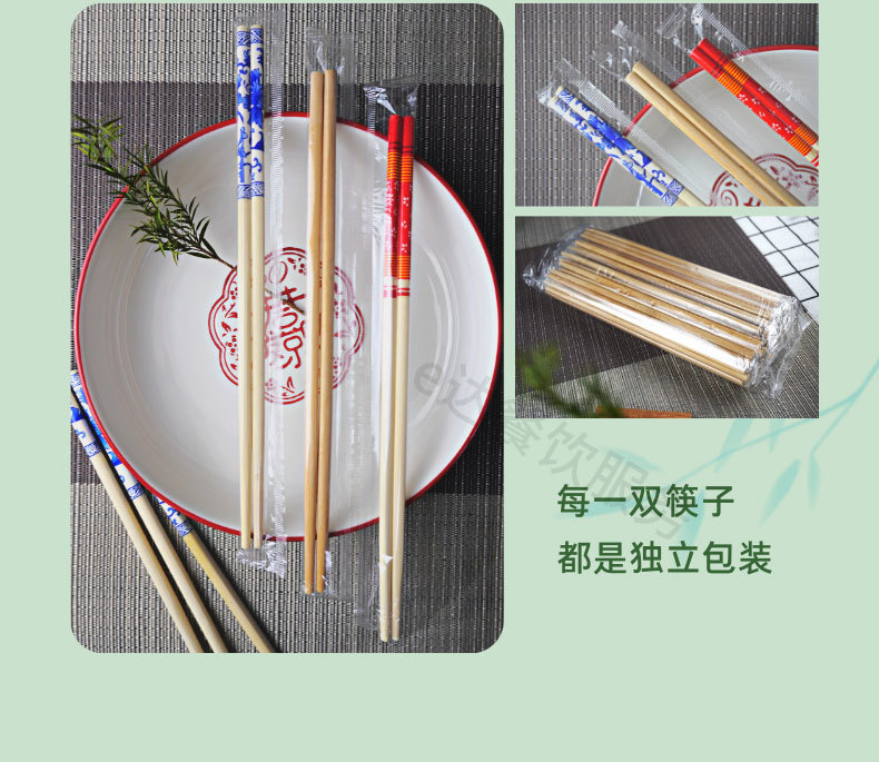 Одноразовые палочки для еды оптом для домашнего использования, удлиненные для ресторанов, ресторанов-хот-пот, коммерческого использования, индивидуально упакованные сине-белые бамбуковые палочки для еды на экспорт.