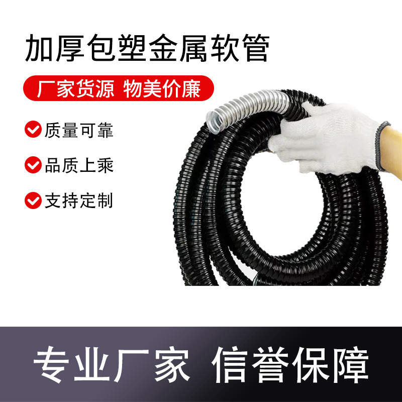 Металлический шланг с пластиковым покрытием, кожух для проводов и кабелей, утолщенный сильфон, защитная труба для кабеля и проводов, утолщенная резьбовая труба.