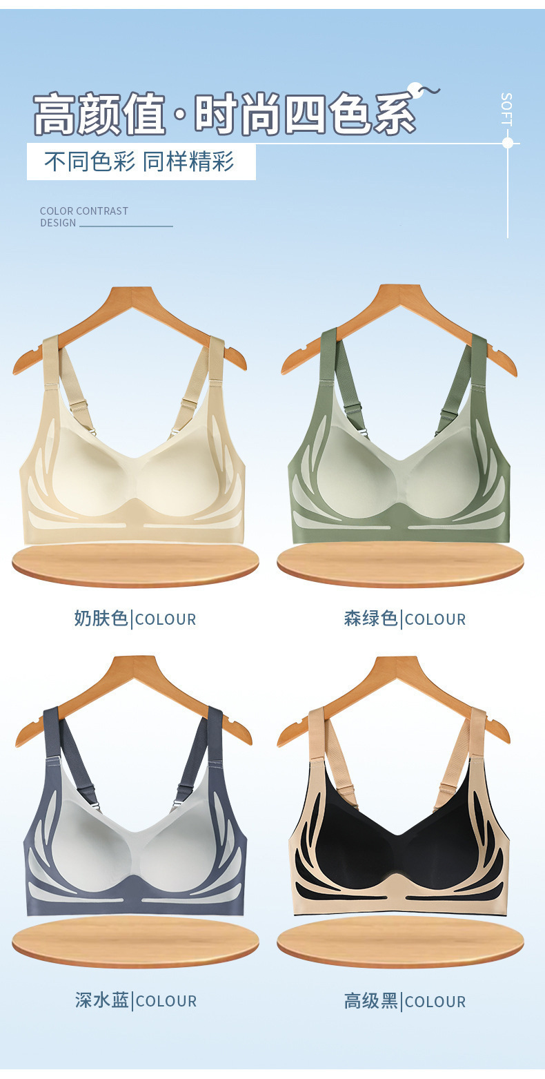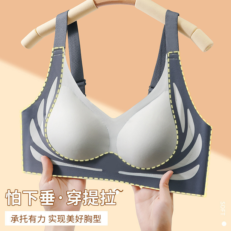 Трансграничная внешняя торговля, английская этикетка, треугольный антигравитационный лифтинг и усадка, бюстгальтер, бесшовное женское нижнее белье с эффектом пуш-ап, контрастный цвет, большой размер