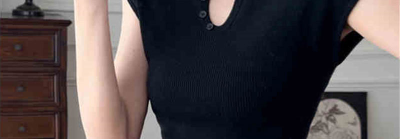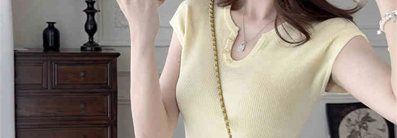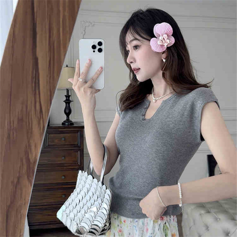 Серый U-образный воротник с летающим рукавом Футболка с короткими рукавами на плече