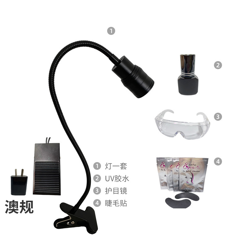 Модель с зажимом мощностью 5 Вт, стандартная для США, УФ-белый свет; Модель зажима европейского стандарта с УФ-белым светом мощностью 5 Вт; Модель с зажимом мощностью 5 Вт, УФ-белый свет, британский стандарт; Модель с зажимом мощностью 5 Вт, аustralийский стандарт, УФ-белый свет; Стандарт США УФ-белый свет 5 Вт + очки + повязки на глаза + зажим для УФ-клея; Европейский стандарт УФ-белого света 5 Вт + очки + повязки на глаза + зажим для УФ-клея; Британский стандарт УФ-белого света 5 Вт + очки + повязки на глаза + зажим для УФ-клея; Австралийский стандарт УФ-белого света 5 Вт + очки + повязки на глаза + зажим для УФ-клея