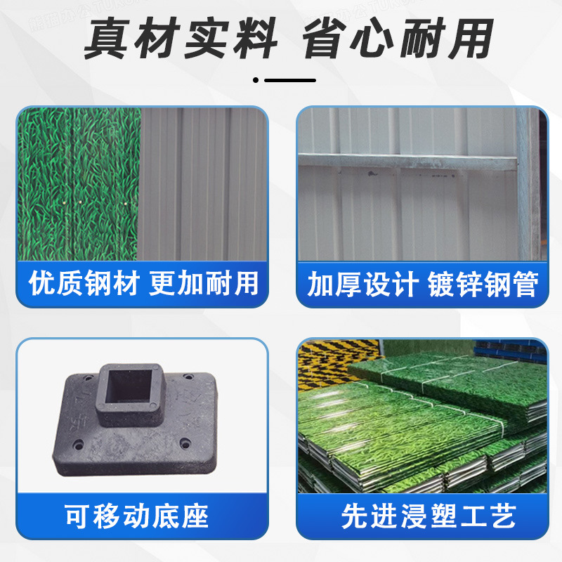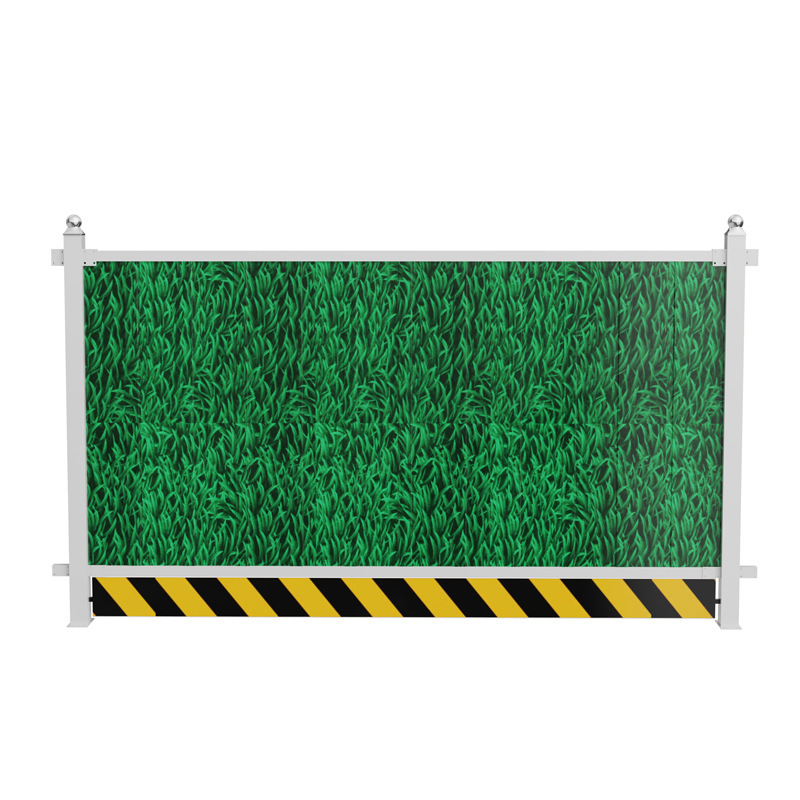 Маленький травяной забор, инженерно-строительные работы, муниципальный защитный забор, перегородка из листового железа, газон на строительной площадке, цветной стальной забор