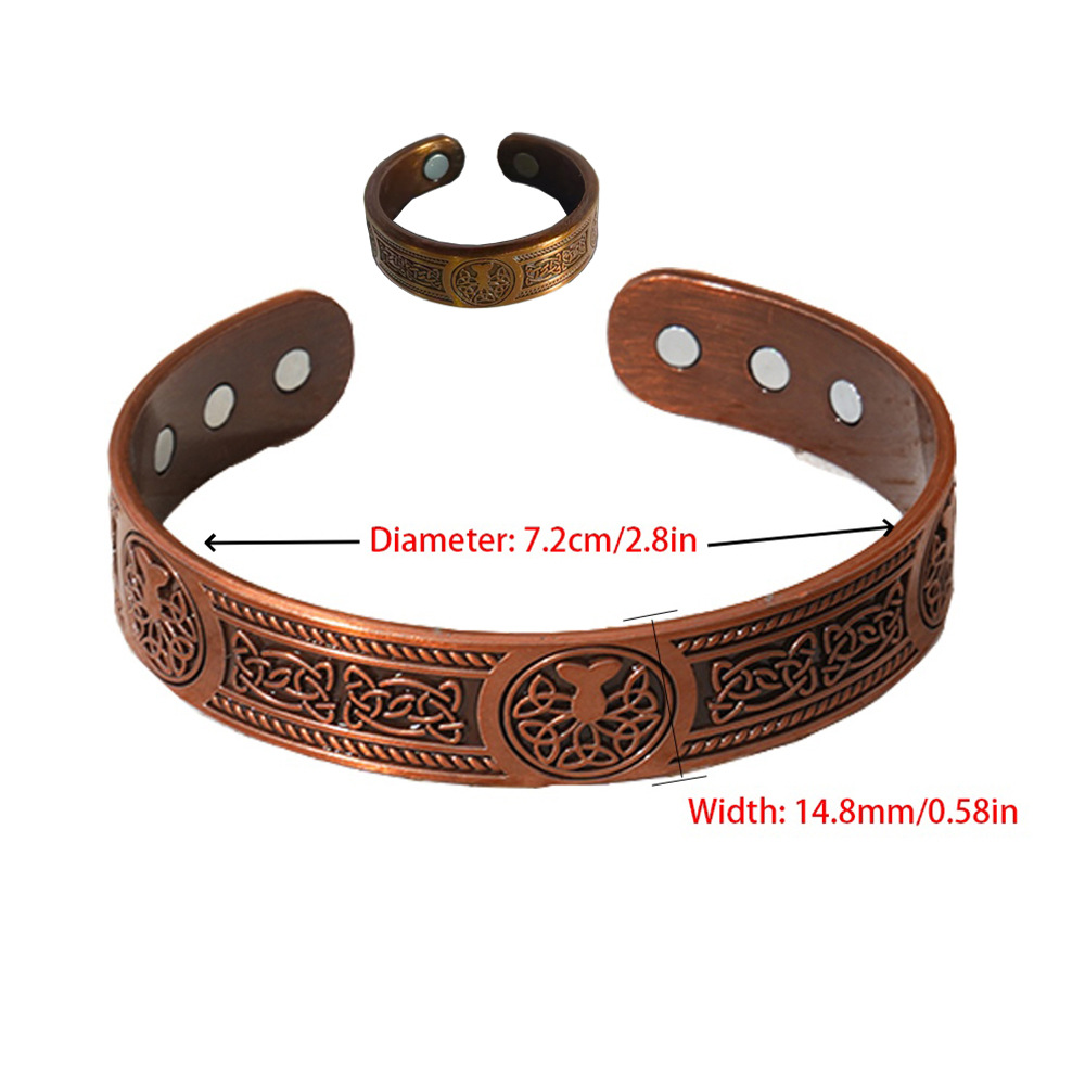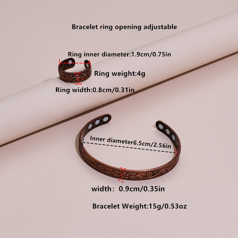 Трансграничный хит продаж, магнитный браслет, кольцо, комбинированный магнитный браслет, цветок, древняя красная медь, матовая ретро-стиль, мужские и женские украшения