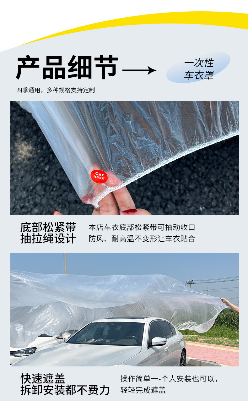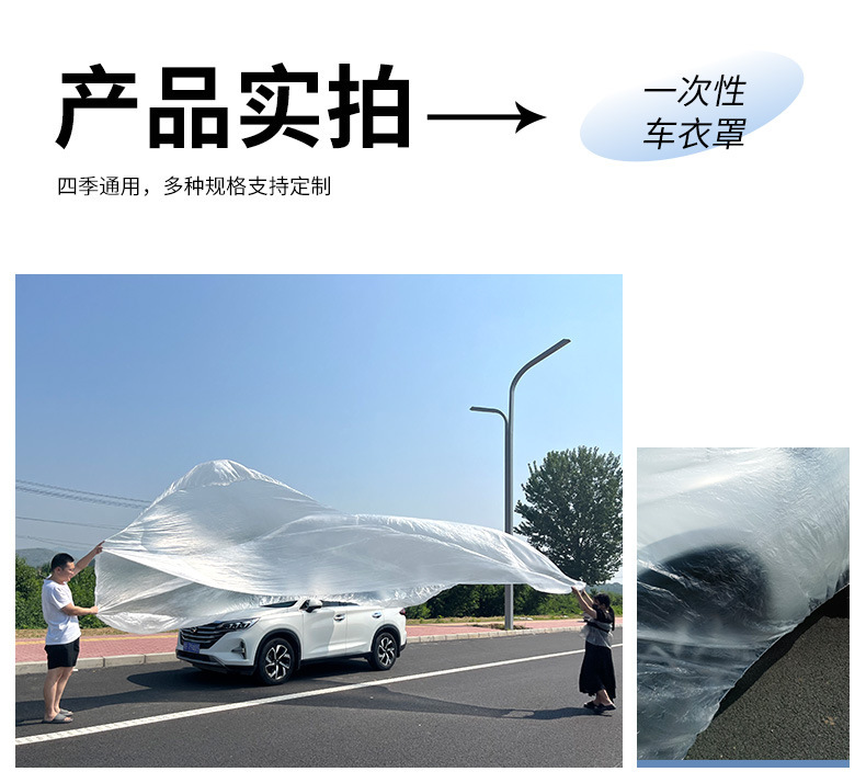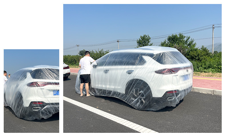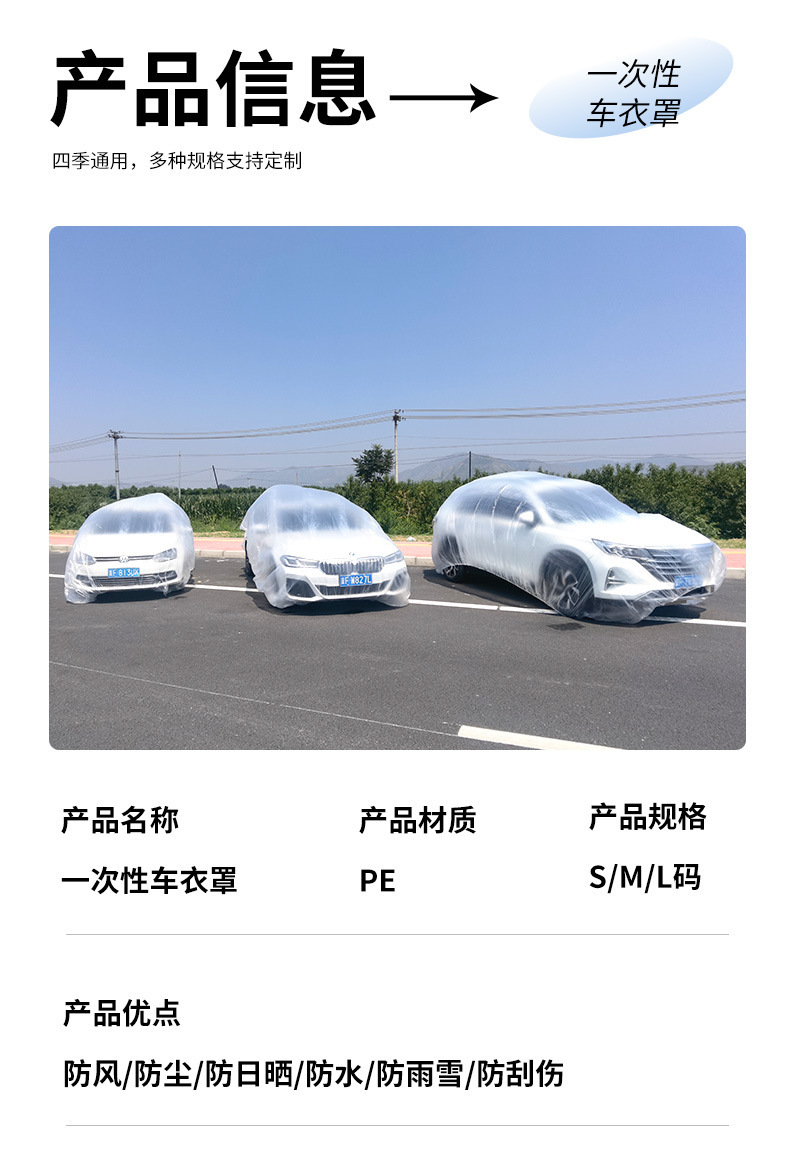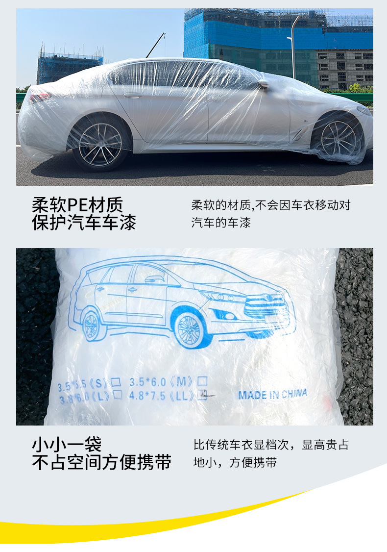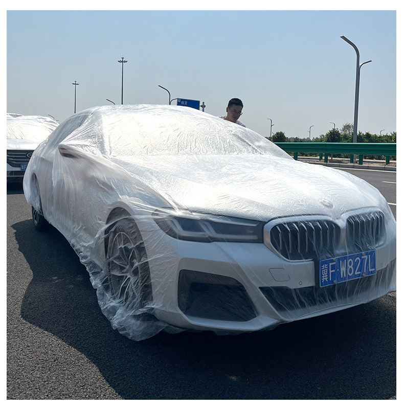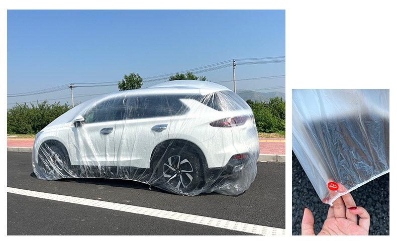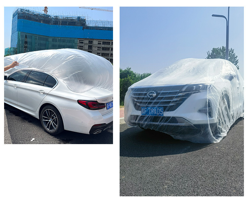 Утолщенный одноразовый автомобильный чехол, пыленепроницаемый, непромокаемый и снегозащитный прозрачный пластиковый защитный чехол, простой портативный автомобильный чехол из полиэтиленовой пленки