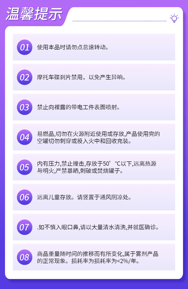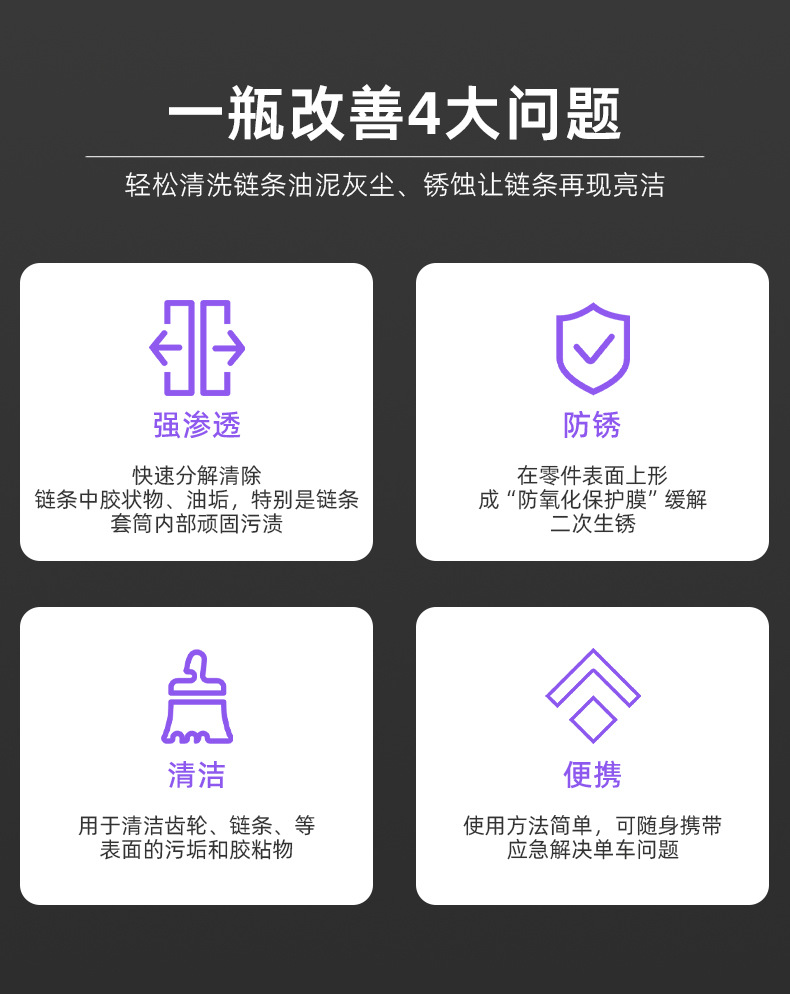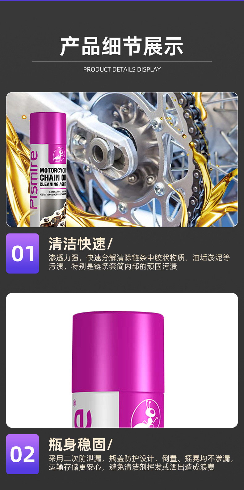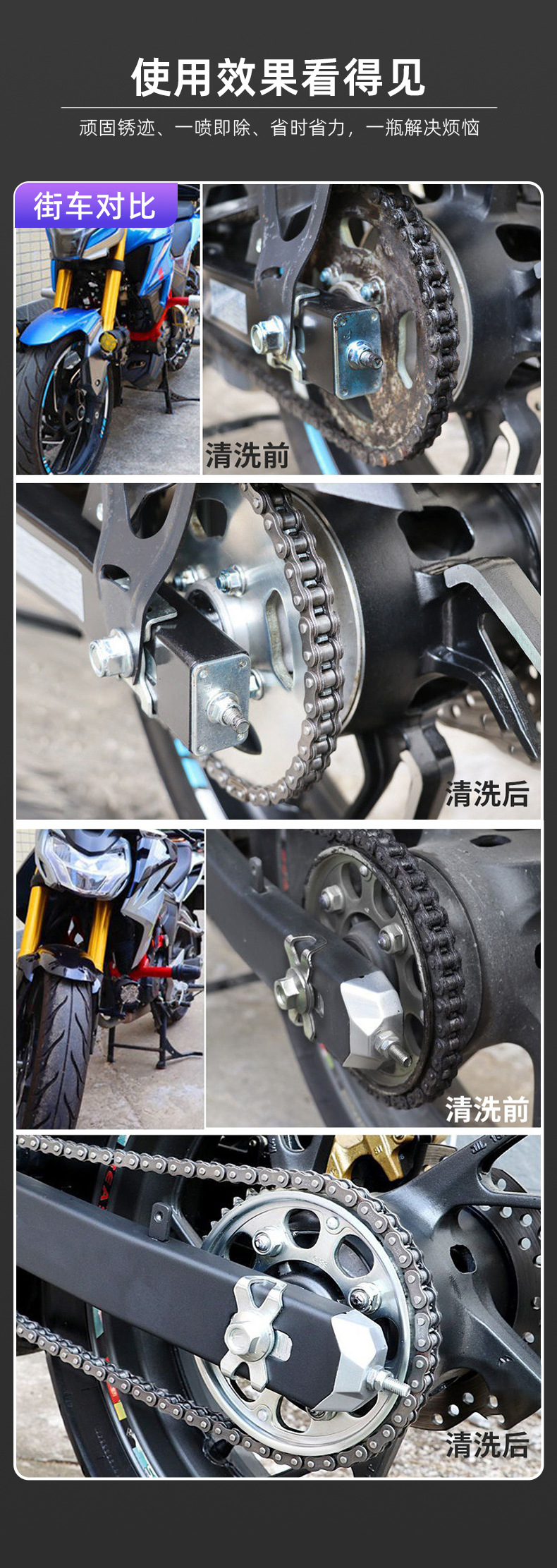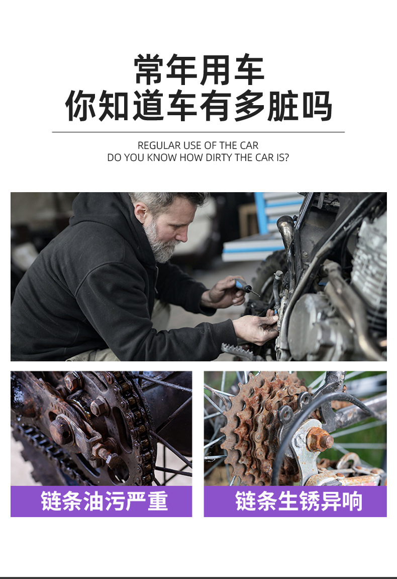 应用场景:链条清洁除锈,链条润滑防锈,头盔清洁表面清洁