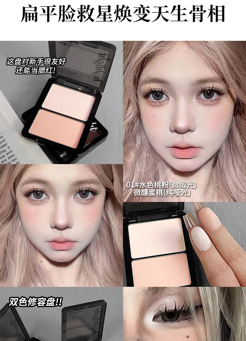 MGL двухцветный один с высоким блеском румяна пластина для ремонта трехмерного матового осветляющего лица