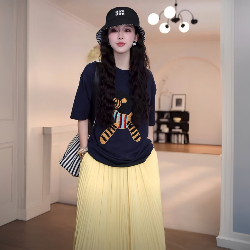 Темно-синий топ; Желтая плиссированная юбка; Набор (набор из 2 шт.)