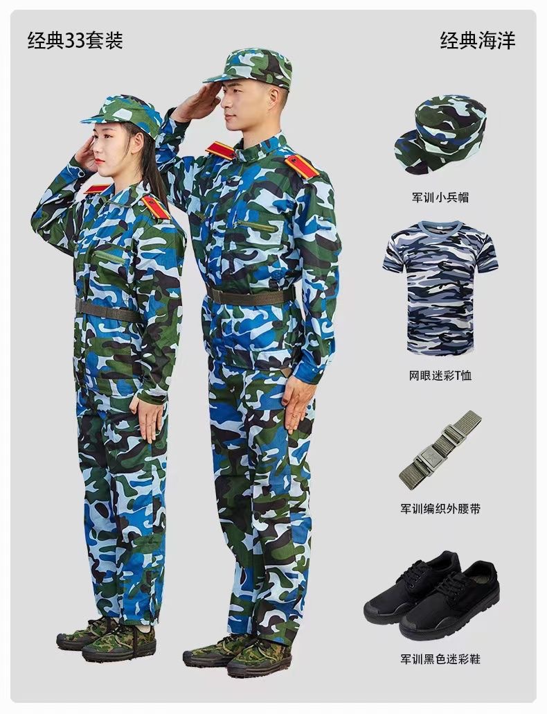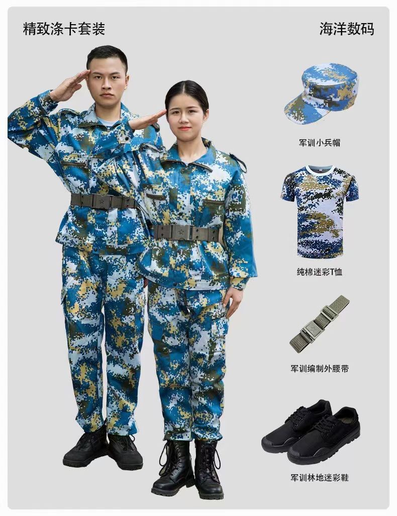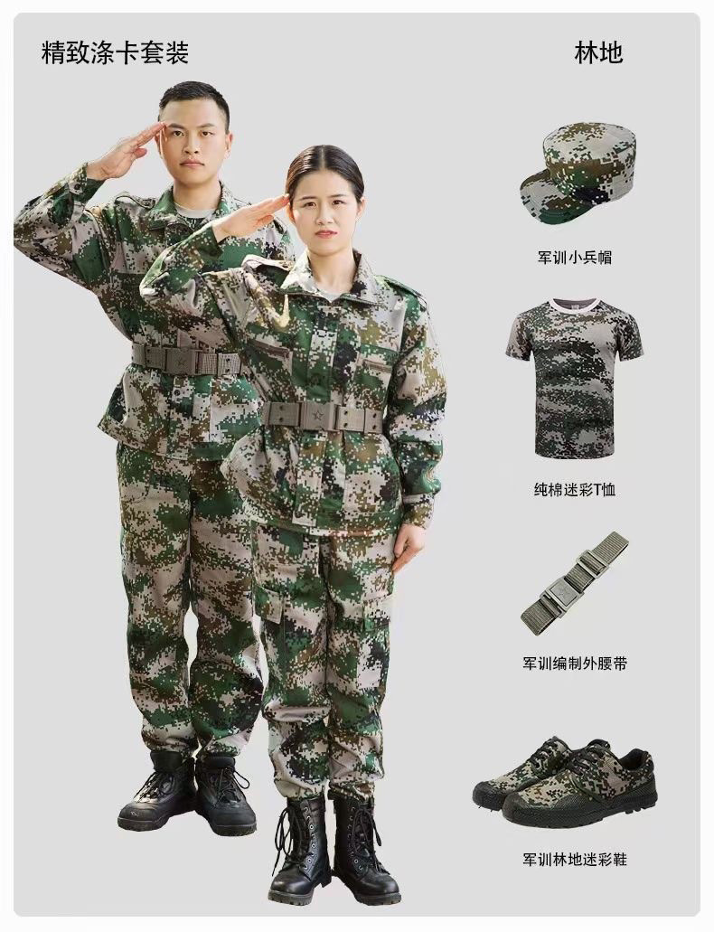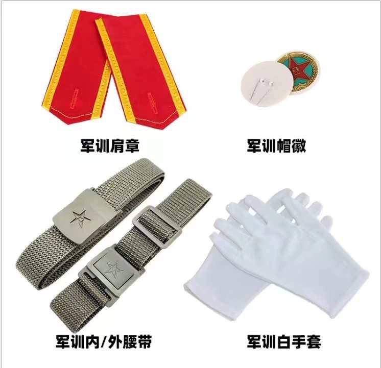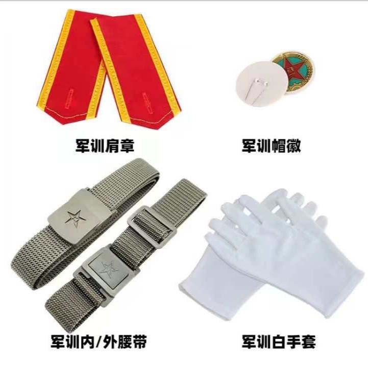 各种花型 面料 款式联系客服!鞋帽内外腰带肩章臂章领章!我们做军训服是专业的!!!
