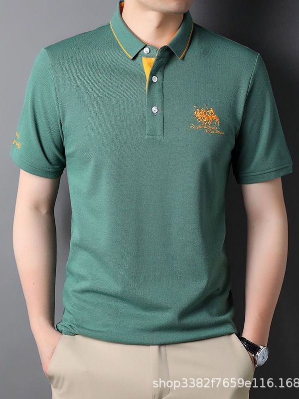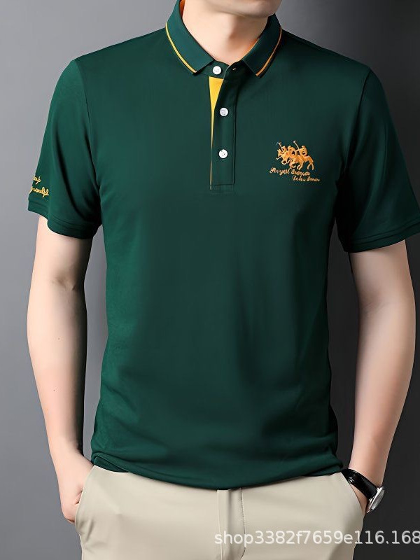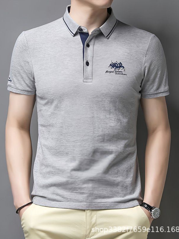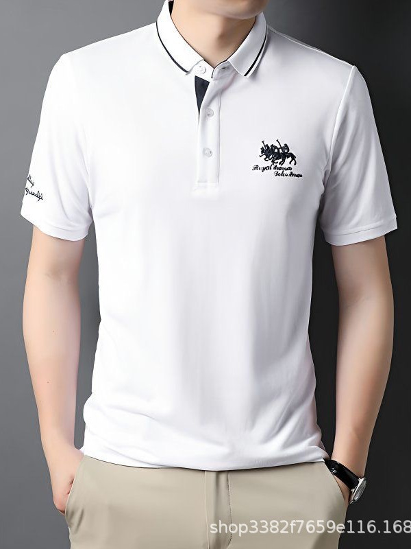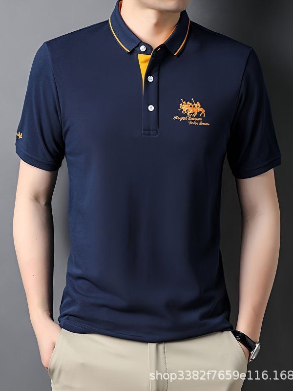 Трансграничная электронная коммерция, мужская летняя рубашка с короткими рукавами для молодежи и среднего возраста, повседневная модная деловая рубашка-поло с короткими рукавами и вышивкой на лацканах