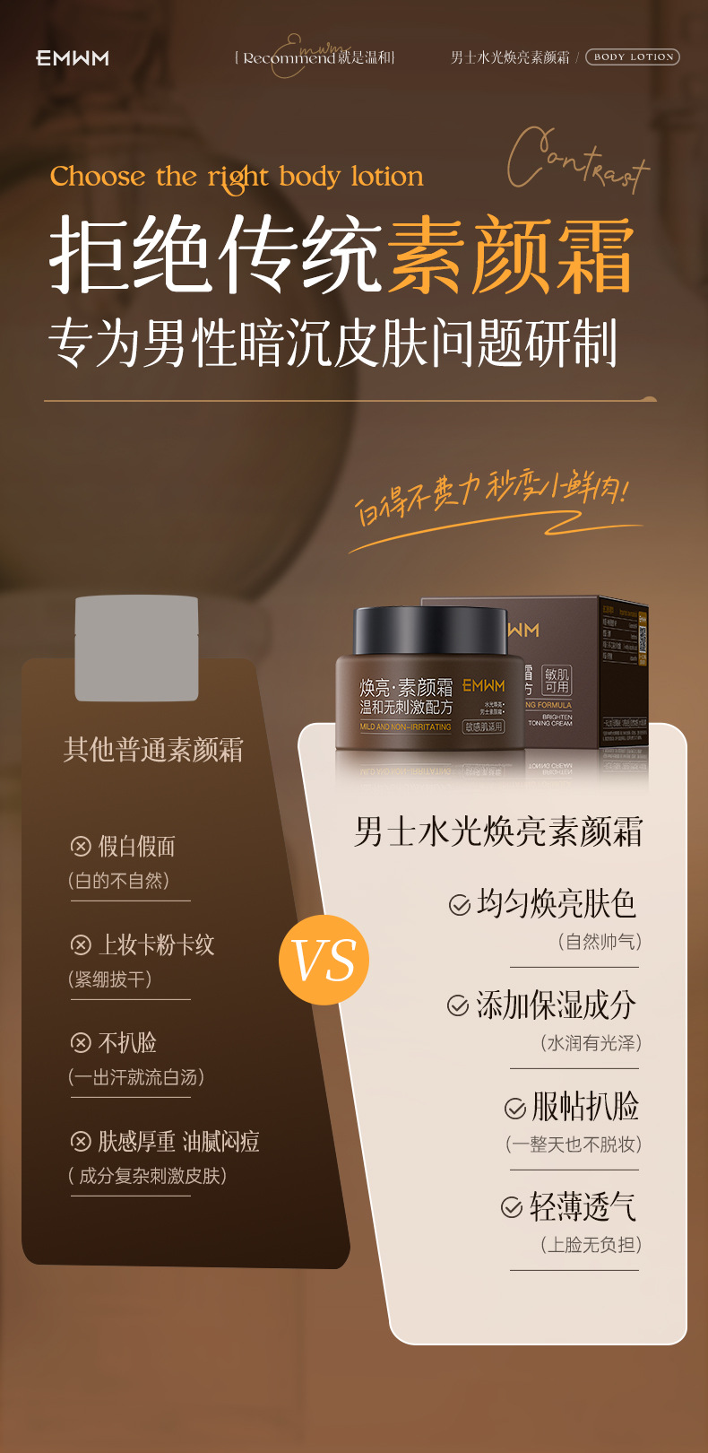EMWM Мужской крем для осветления воды, 50 г, осветляет цвет кожи, ленивый крем, естественно осветляет и выравнивает цвет кожи