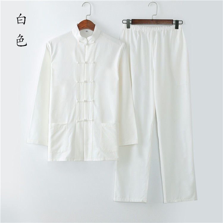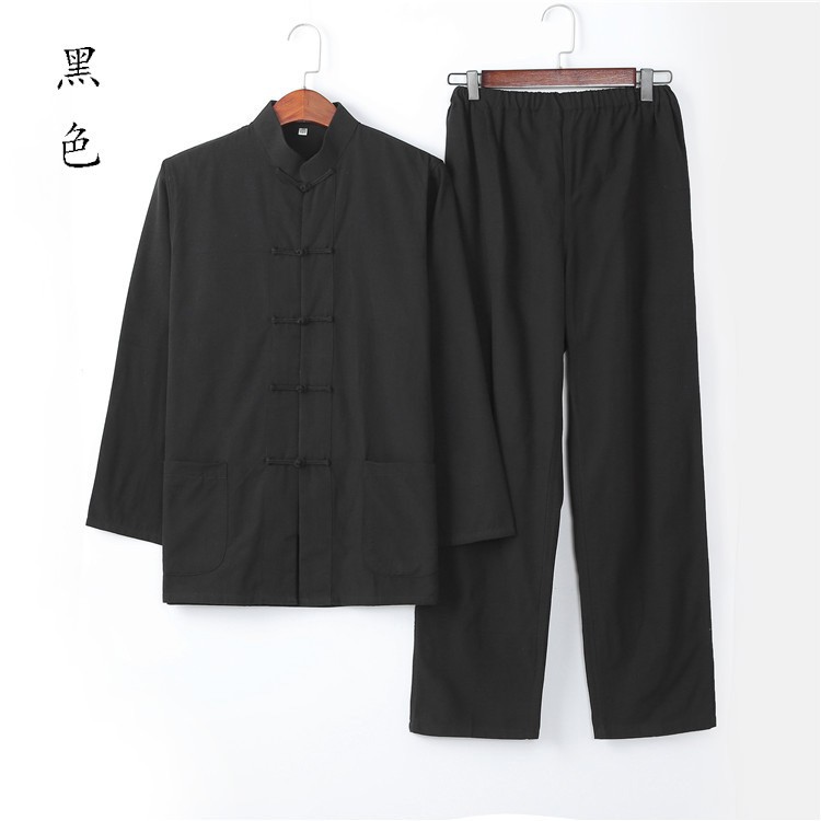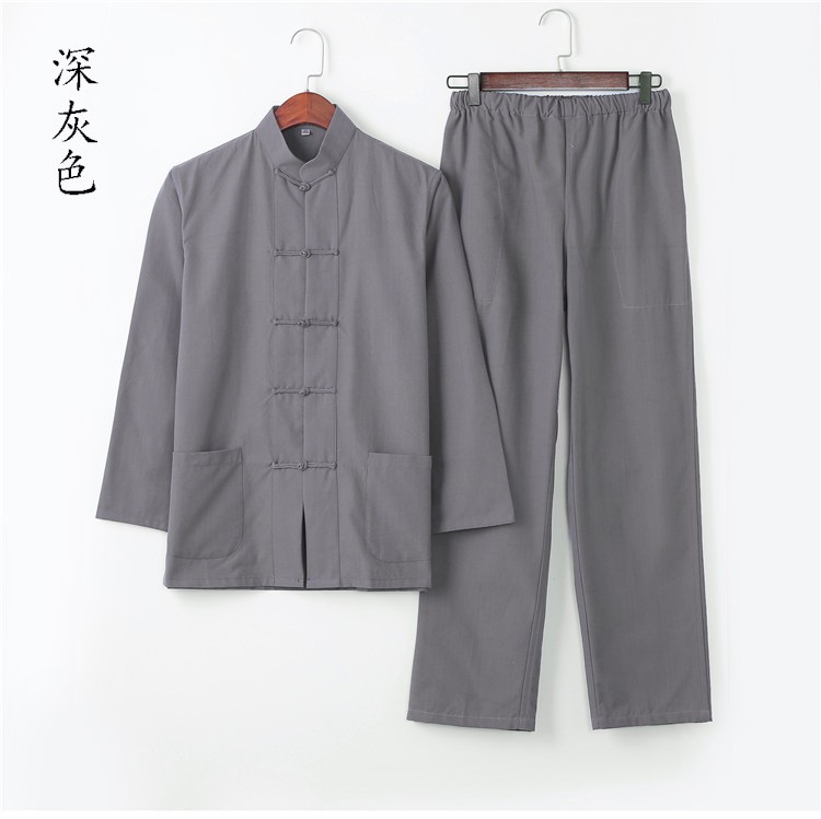 Традиционный китайский мужской костюм с длинными рукавами, униформа Тай Чи из грубой ткани из чистого хлопка, ханьфу с большими пуговицами, наряд для папы, одежда для мирян, китайский стиль.