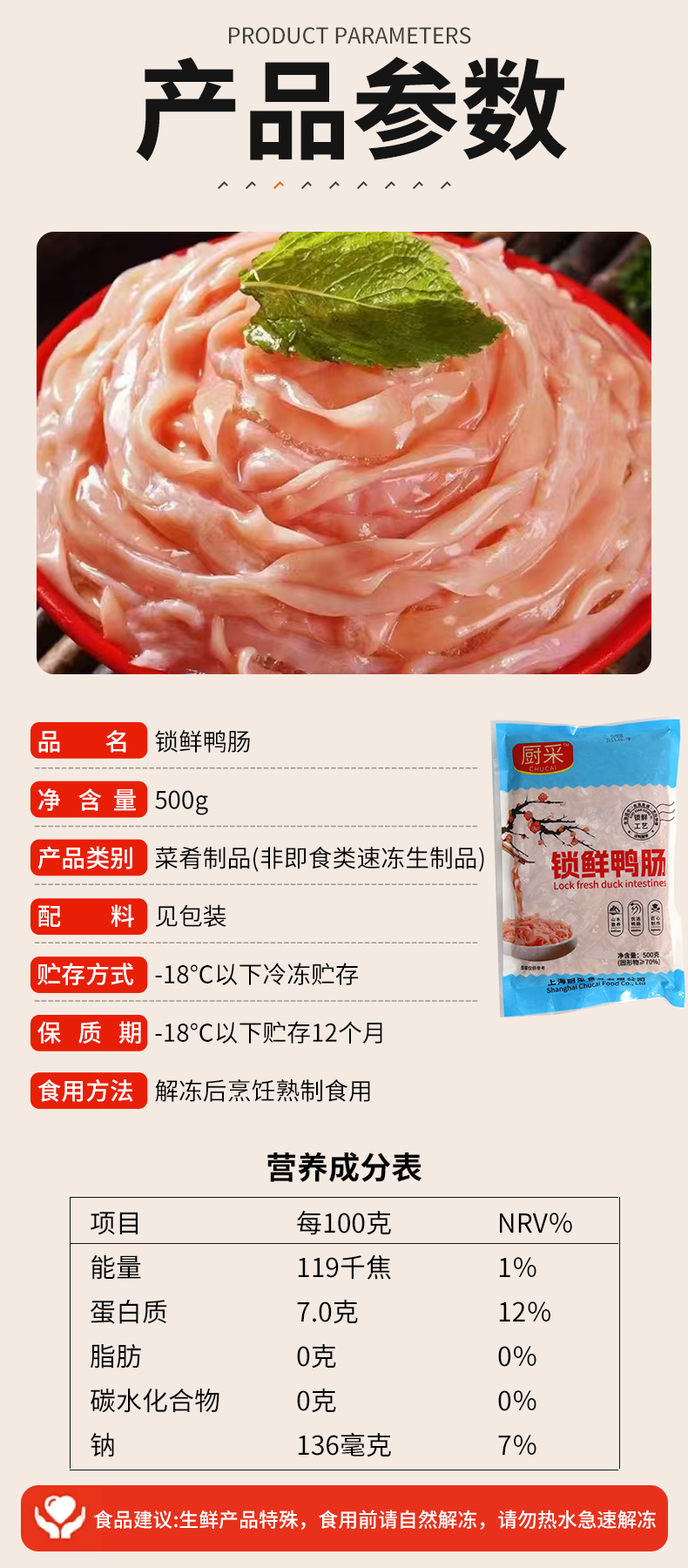 Свежие кишки утки Chucai 500 г*20 пакетов/[коробка]