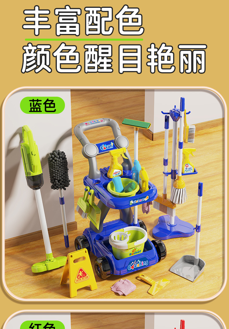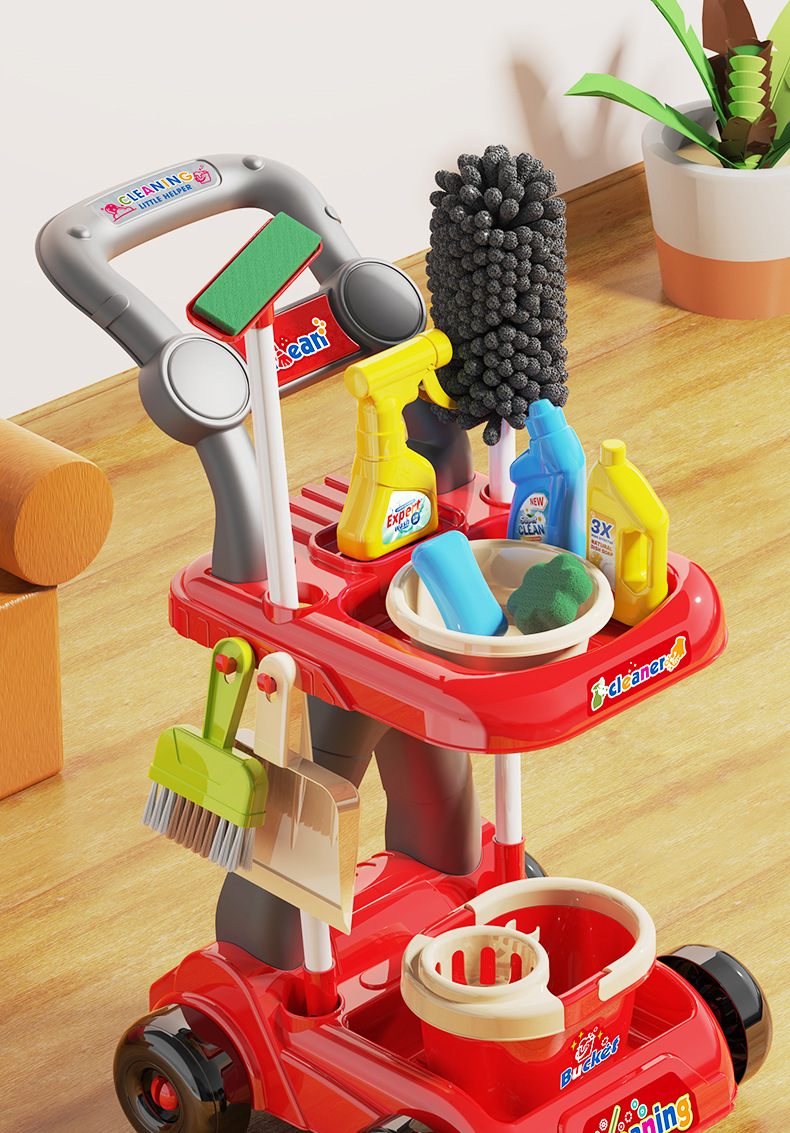 Утолщенная коляска для хранения детской уборки развивает хорошие привычки чистки и богатые инструменты. Комбинация раннего образования для мальчиков. Подарки на День защиты детей для девочек. Весенний фестиваль. подарки на день рождения.