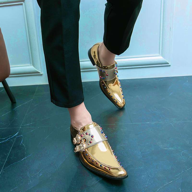 Ботинки «Челси» из натурального золота, мужская кожаная обувь с заклепками, высококачественные золотые туфли с острым носком, модная детская обувь, туфли «Челси»