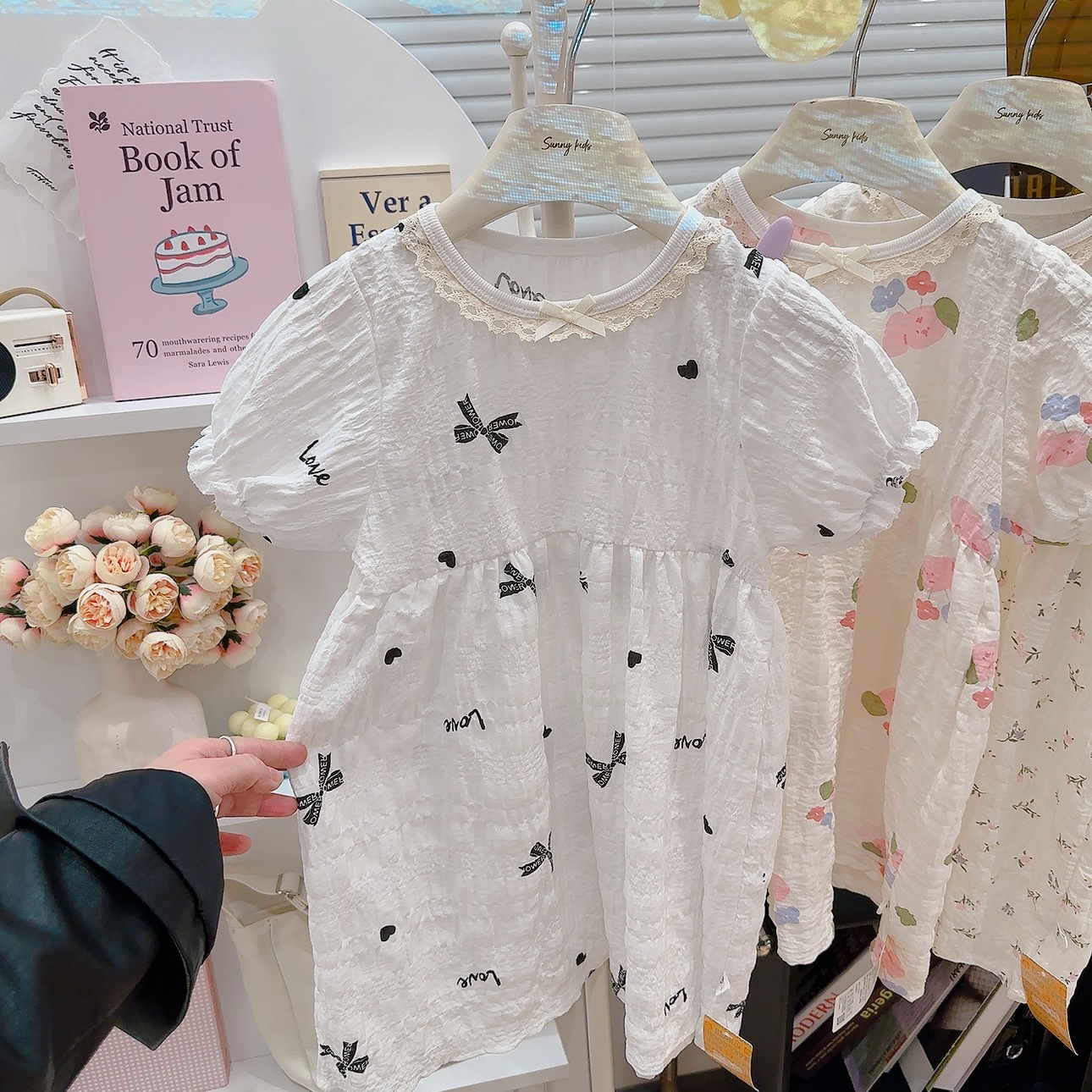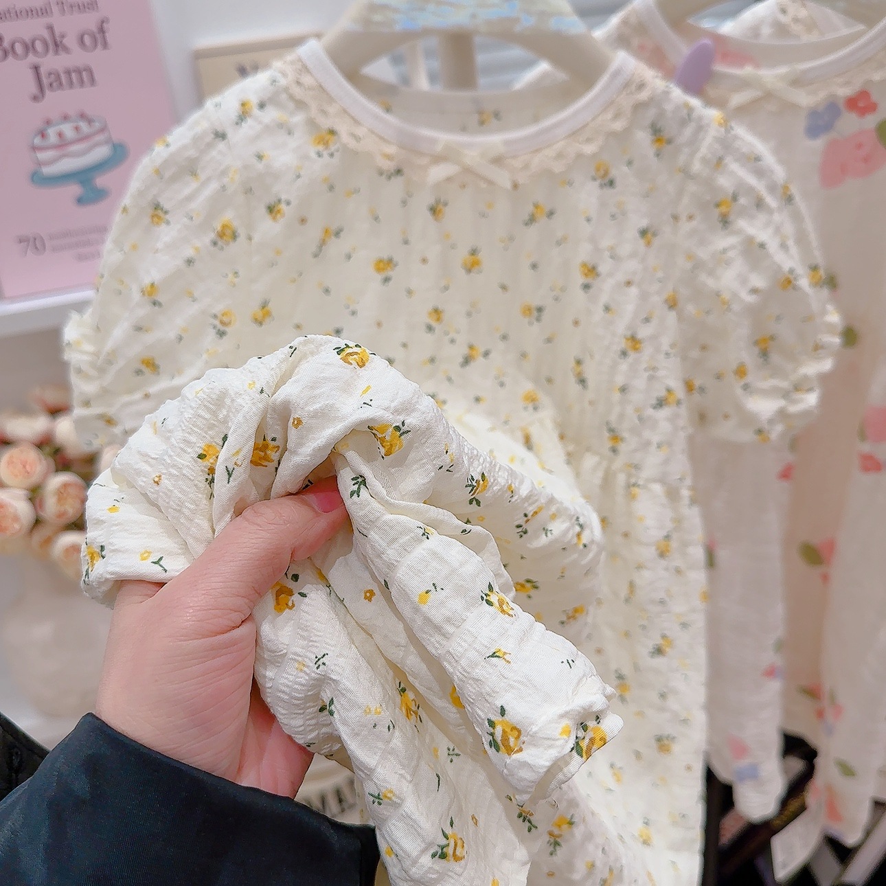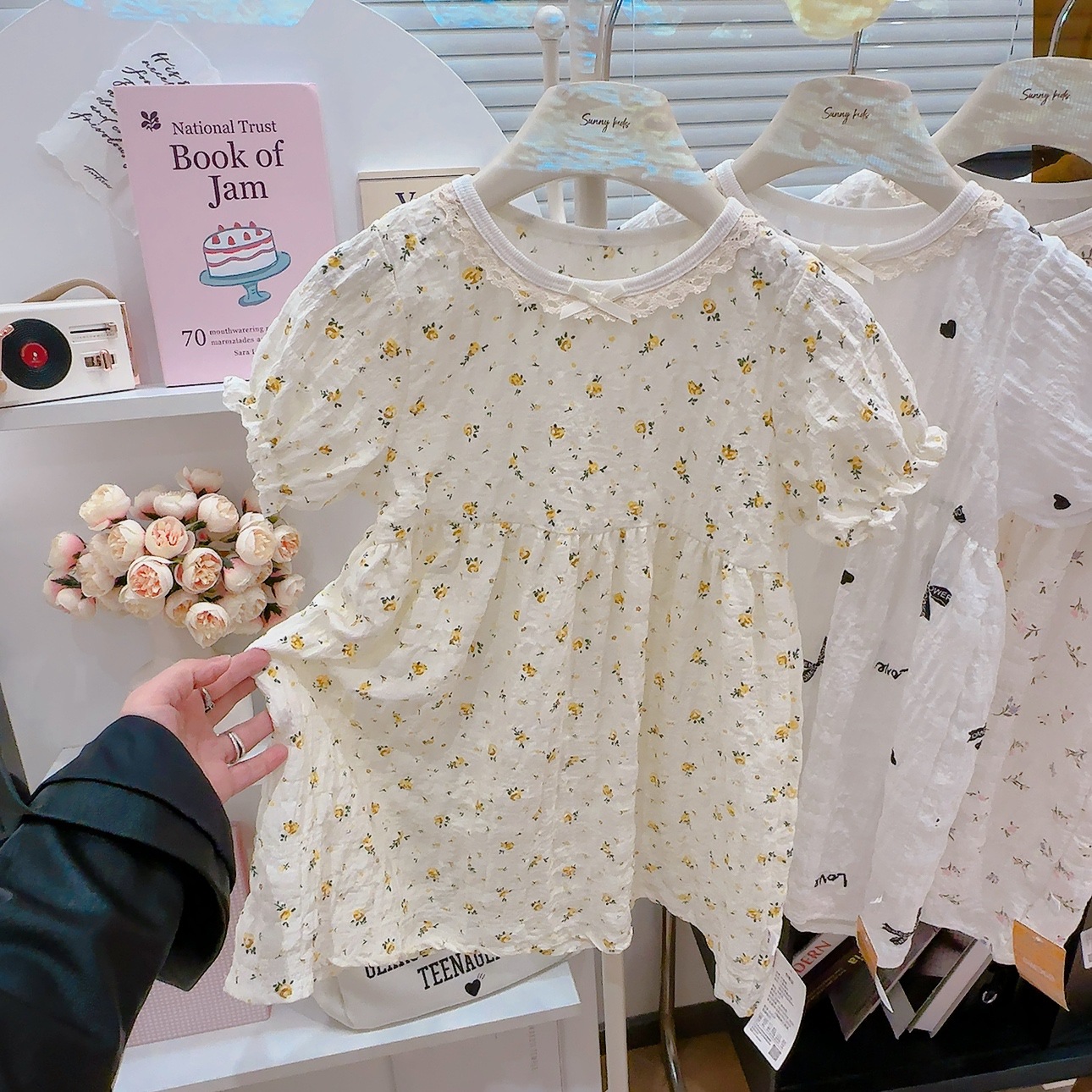 Ins платье с пышными рукавами для девочек, новое летнее платье принцессы в корейском стиле с цветочным принтом и короткими рукавами, летнее детское платье для малышей категории