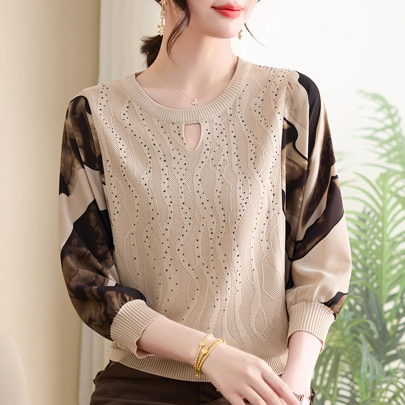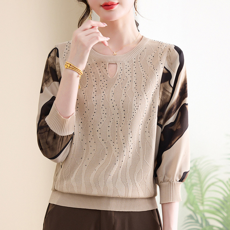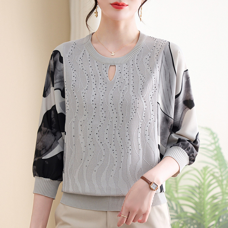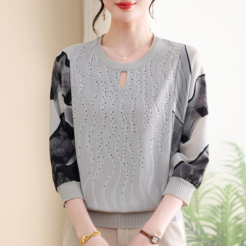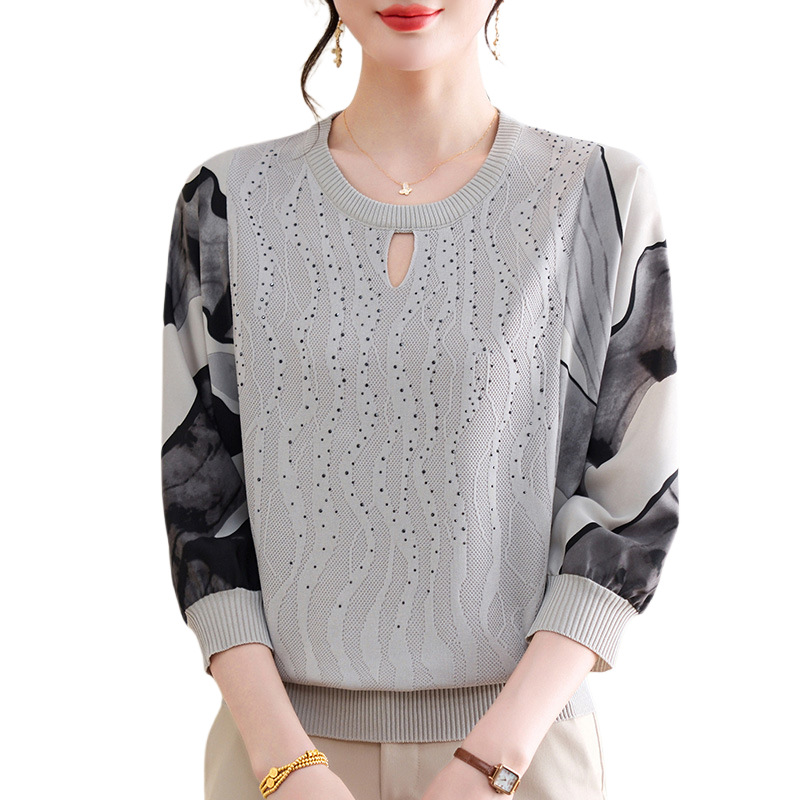 Мама весенняя тонкая футболка среднего возраста женская весна и осень 2025 новая вязаная нижняя рубашка среднего и пожилого иностранного топ