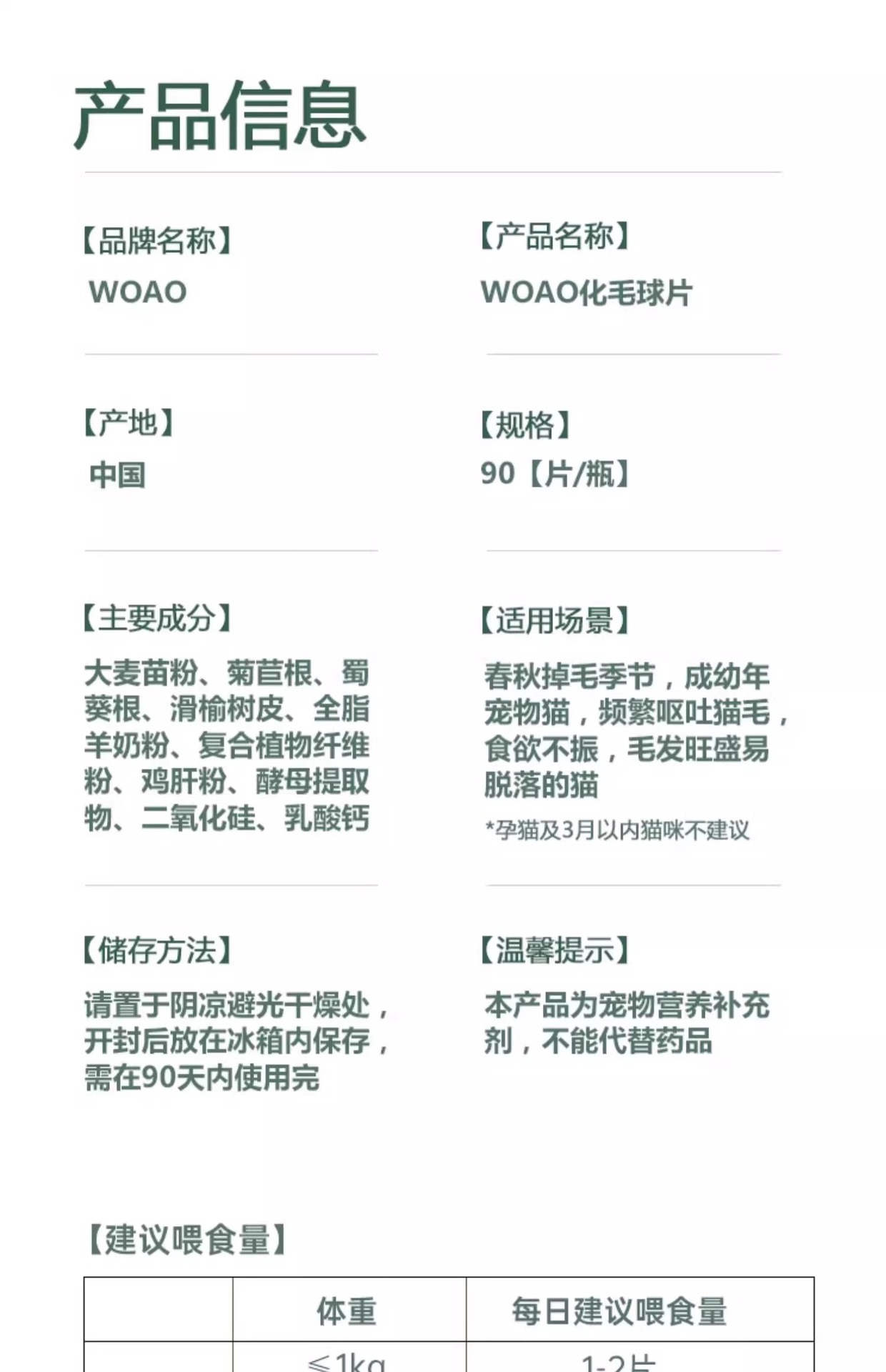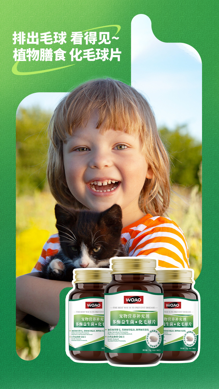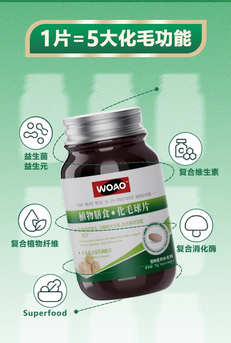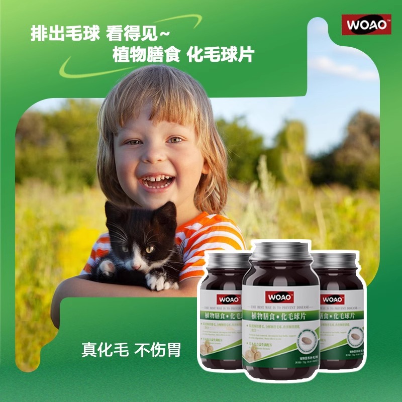 WOAO Таблетки от шерстяных комков для домашних животных. Нежное удаление и украшение волос. Безопасно и безвредно для желудка. Пищевая добавка. Таблетки с кошачьей травой. 90 таблеток.