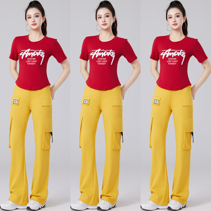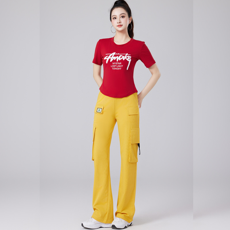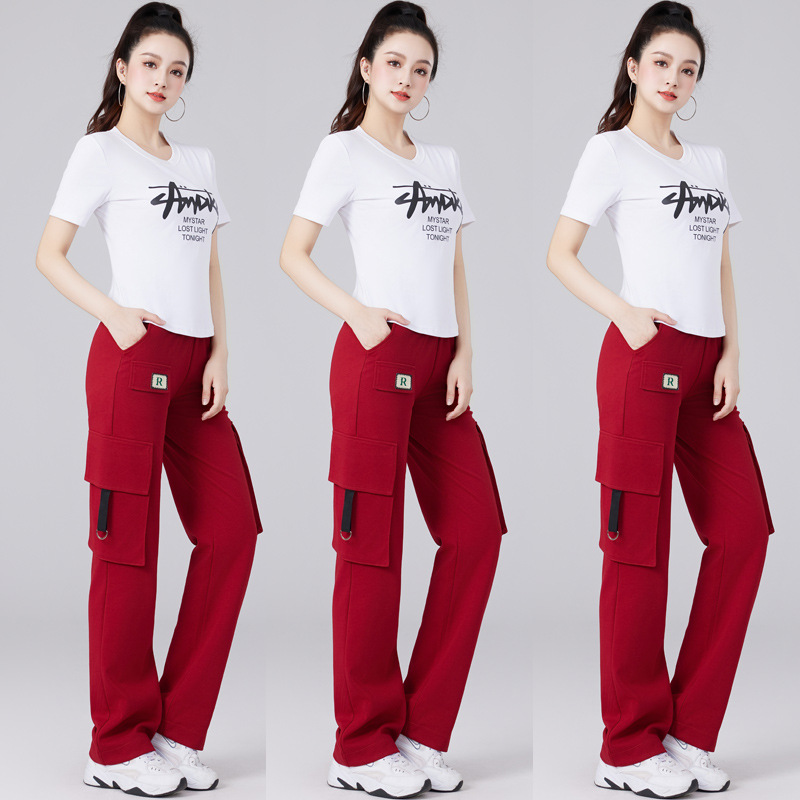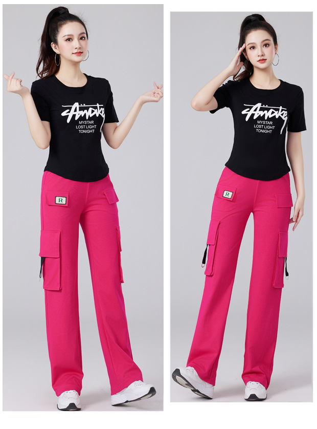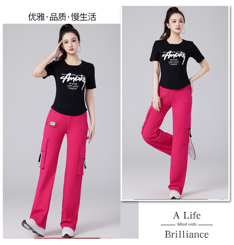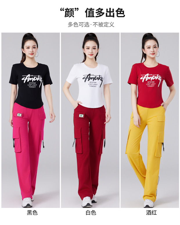 Ye Rou Spring Summer Plaza Танцевальная одежда Спорт, отдых, фитнес, прыжки, беговая одежда, тонкая с длинными рукавами, узкий набор прямых брюк