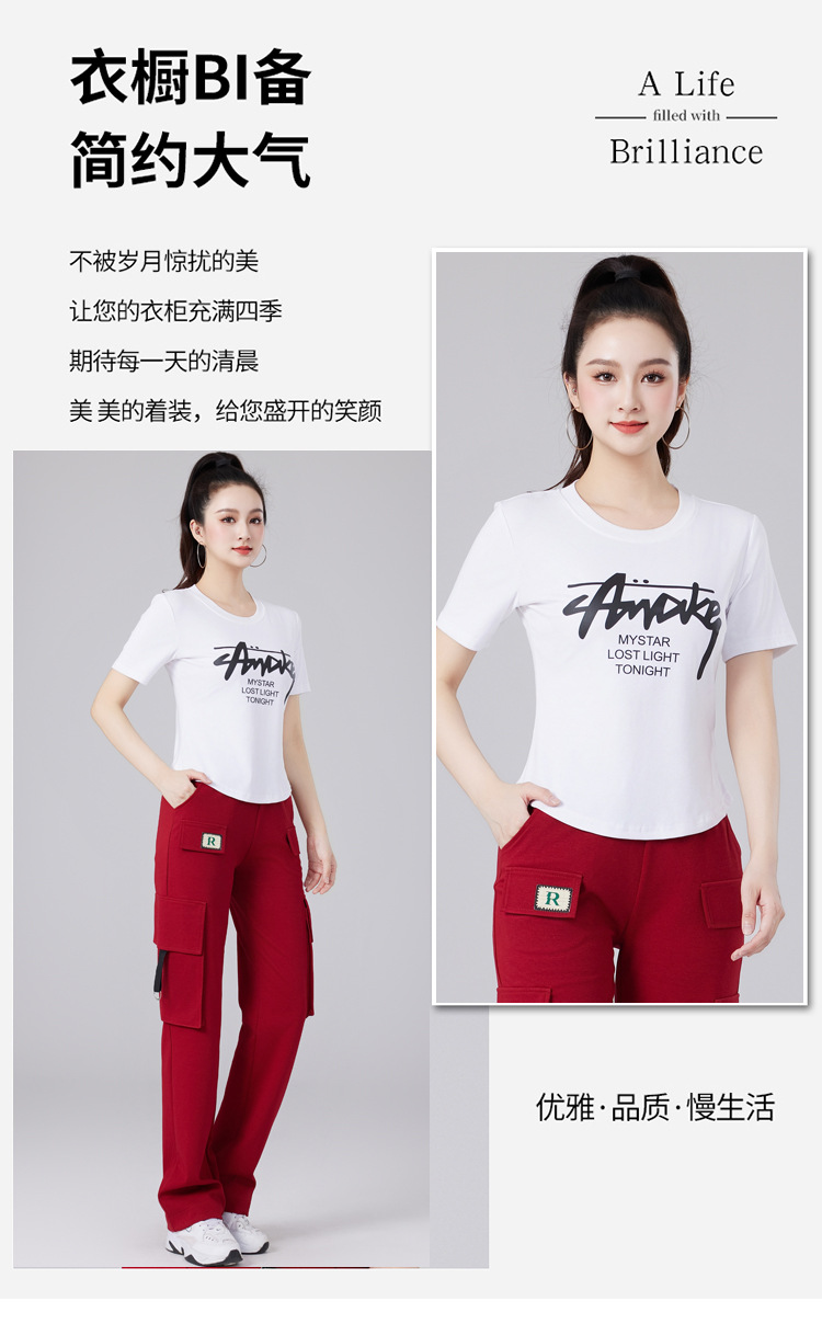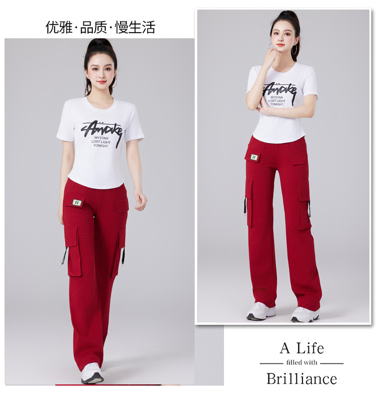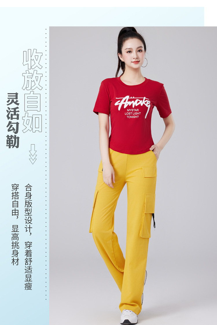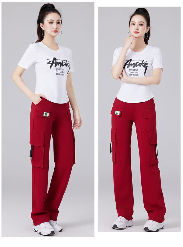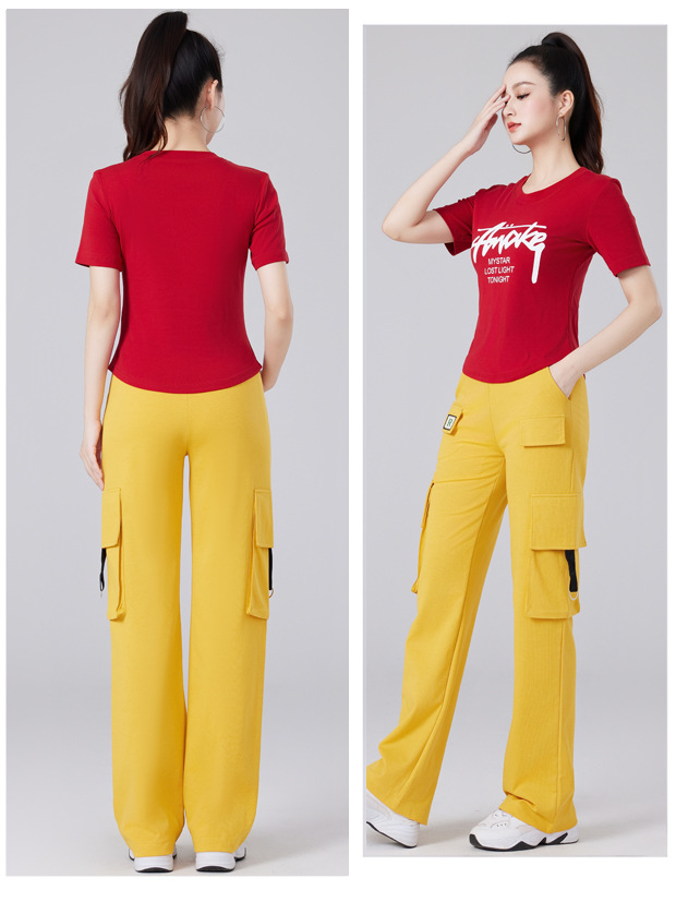 Ye Rou Spring Summer Plaza Танцевальная одежда Спорт, отдых, фитнес, прыжки, беговая одежда, тонкая с длинными рукавами, узкий набор прямых брюк