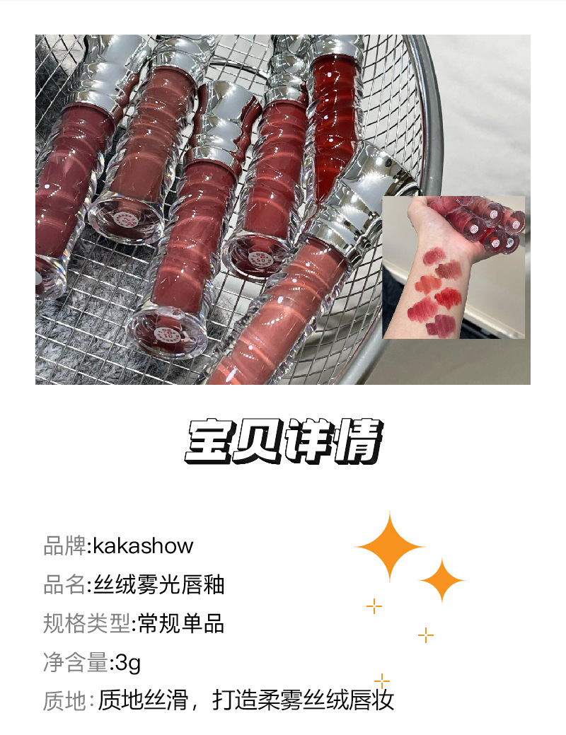 Kakashow бархатная матовая глазурь для губ, не высыхающая, натуральная, мягкая, матовая, бархатная, отбеливающая помада, глазурь для губ