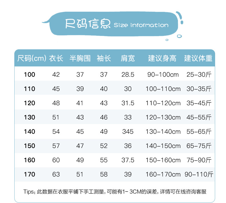 100cm; 110cm; 120cm; 130cm; 140cm; 150cm; 160cm; 170cm
