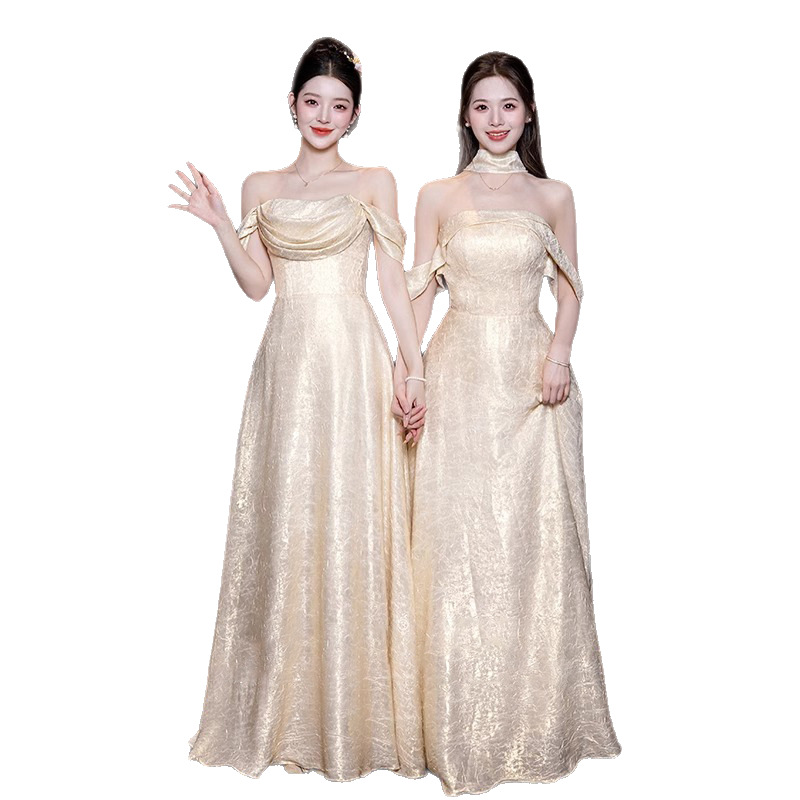 Платье подружки невесты 2025, новая модель, для Дня независимости, элитное свадебное жаккардовое платье с золотой вышивкой, платье для подружек невесты, вечернее платье, подходит для повседневной носки