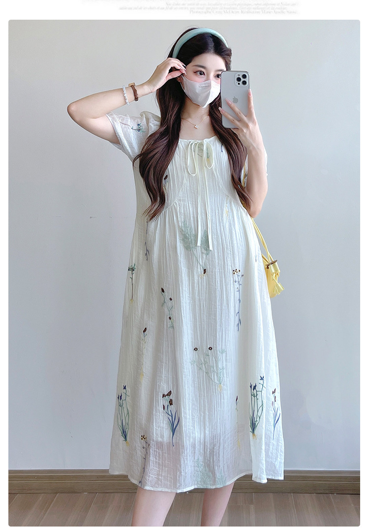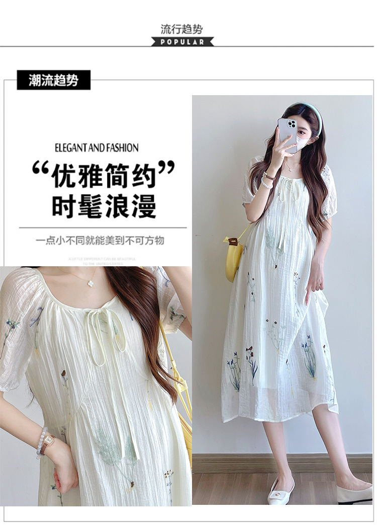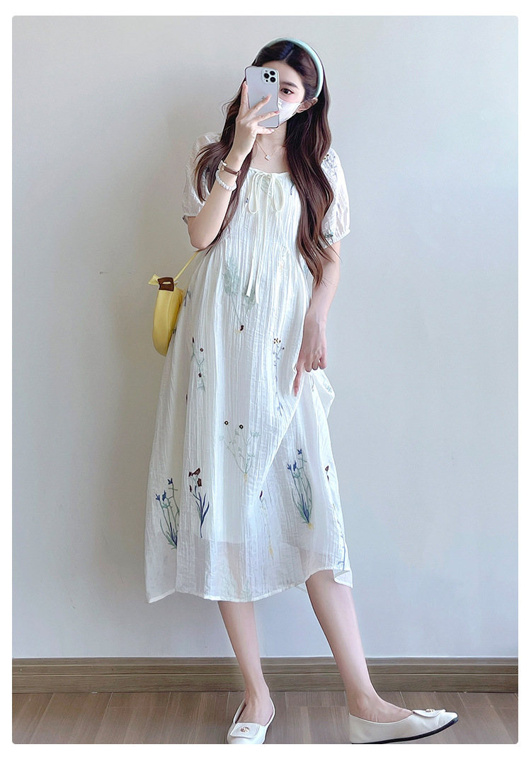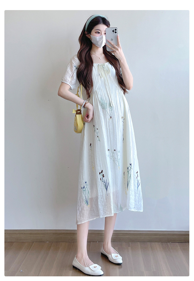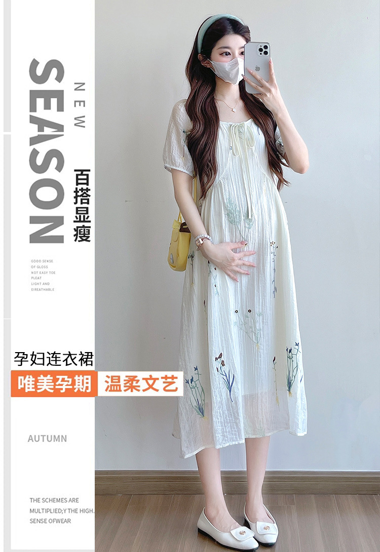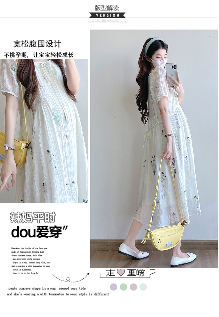 Реальная стрельба 2025 года одежда для беременных летом новая французская тяжелая промышленная вышивка цветочный темперамент тонкая и уменьшенная длинная юбка