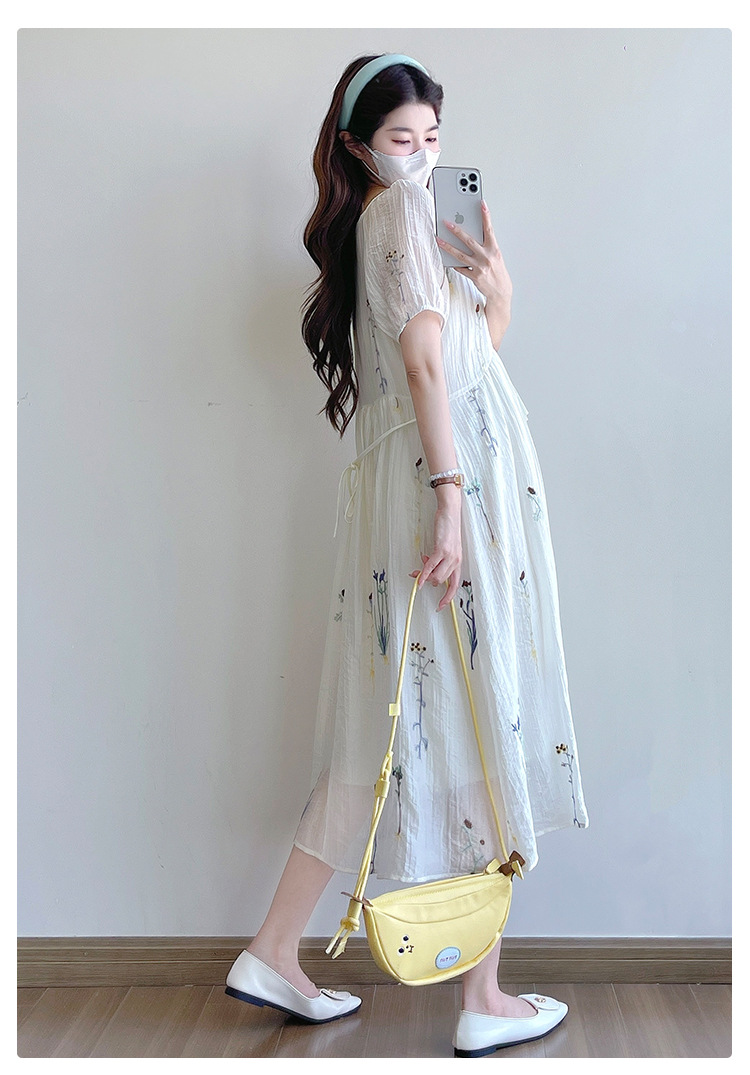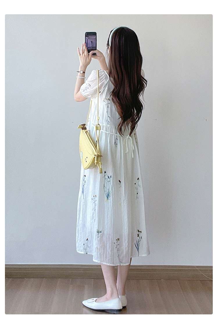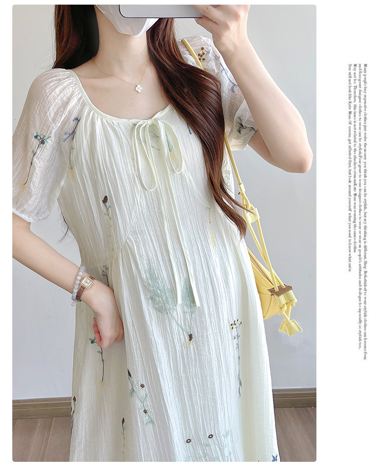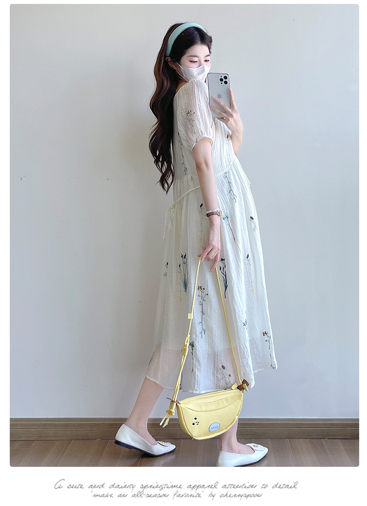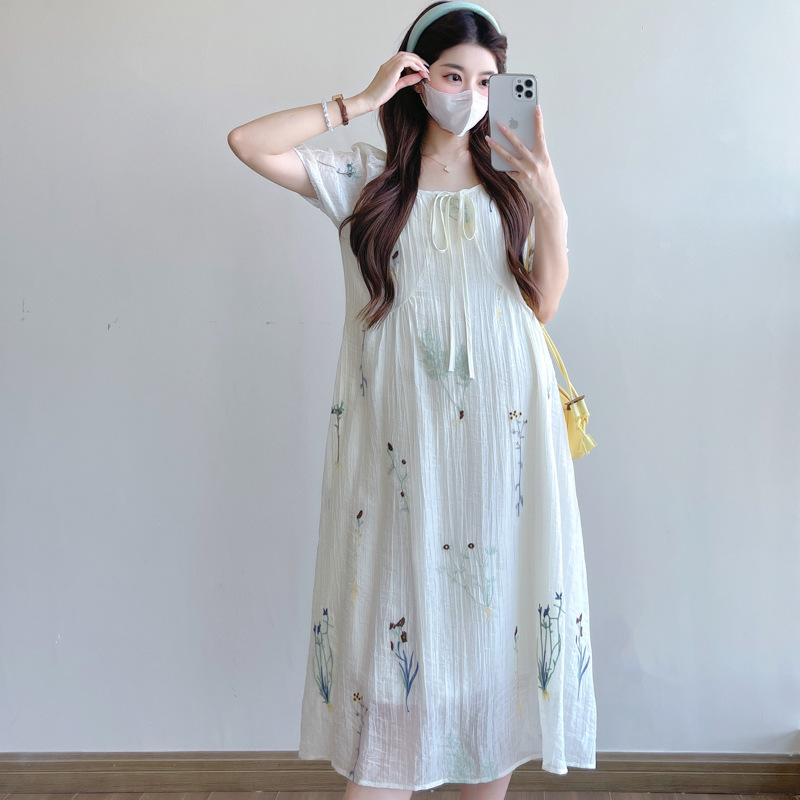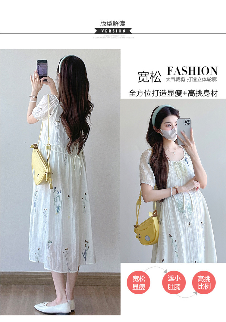 Реальная стрельба 2025 года одежда для беременных летом новая французская тяжелая промышленная вышивка цветочный темперамент тонкая и уменьшенная длинная юбка
