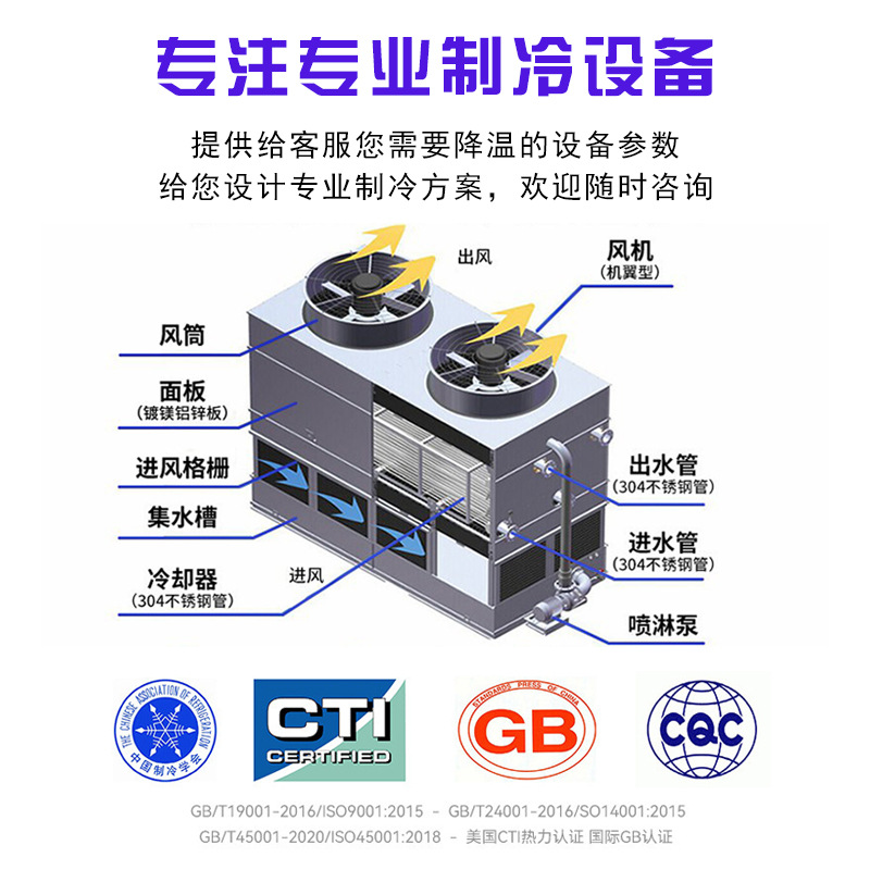 Закрытая промышленная водовыделительная башня из цельной стали на 100 тонн, с закрытой циркуляцией воды и распылением, композитная башня для сухого охлаждения воды.