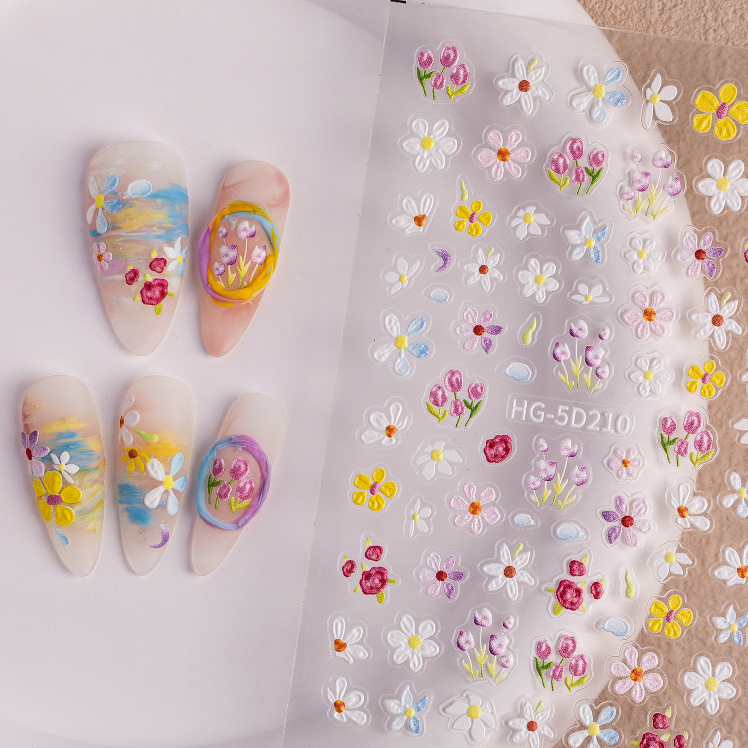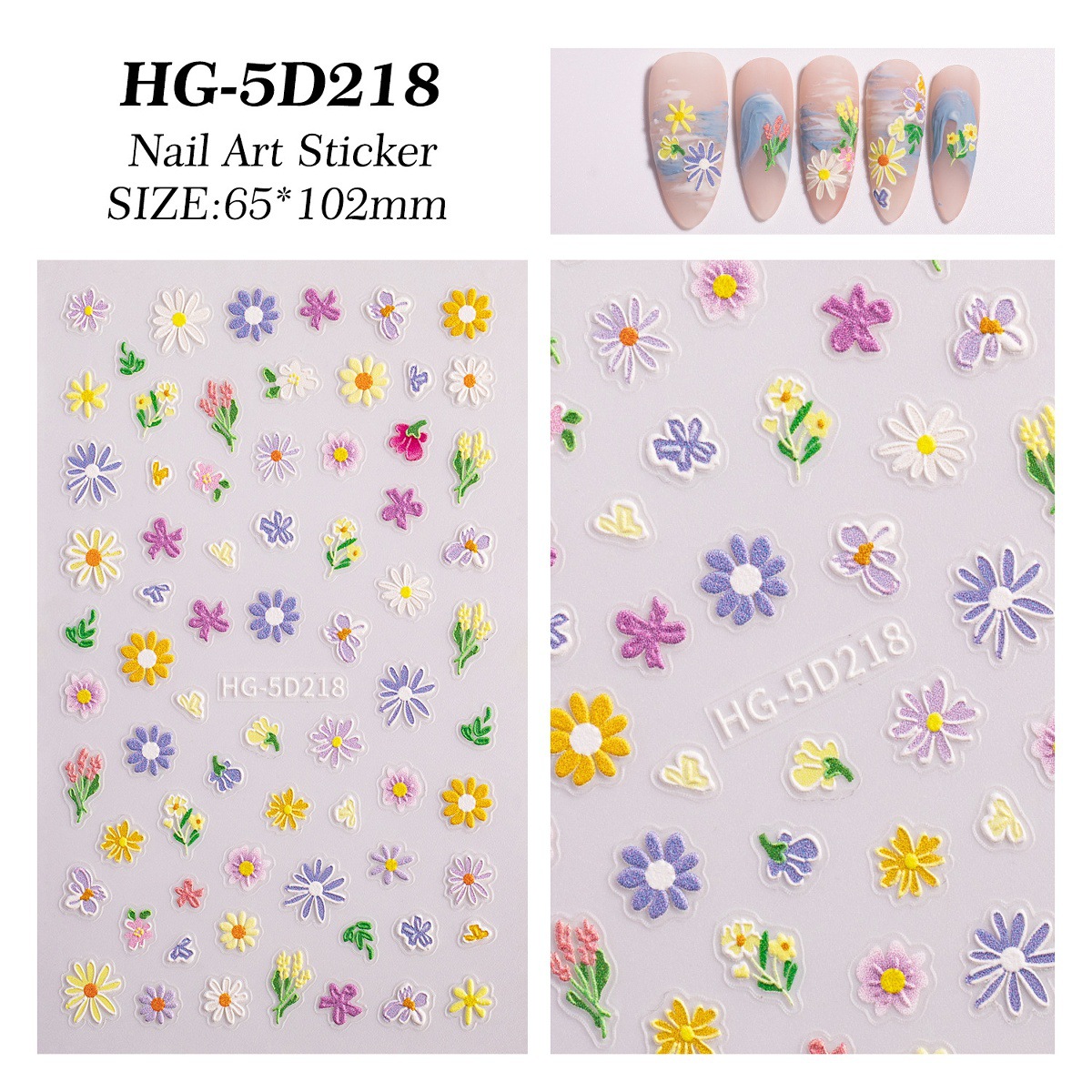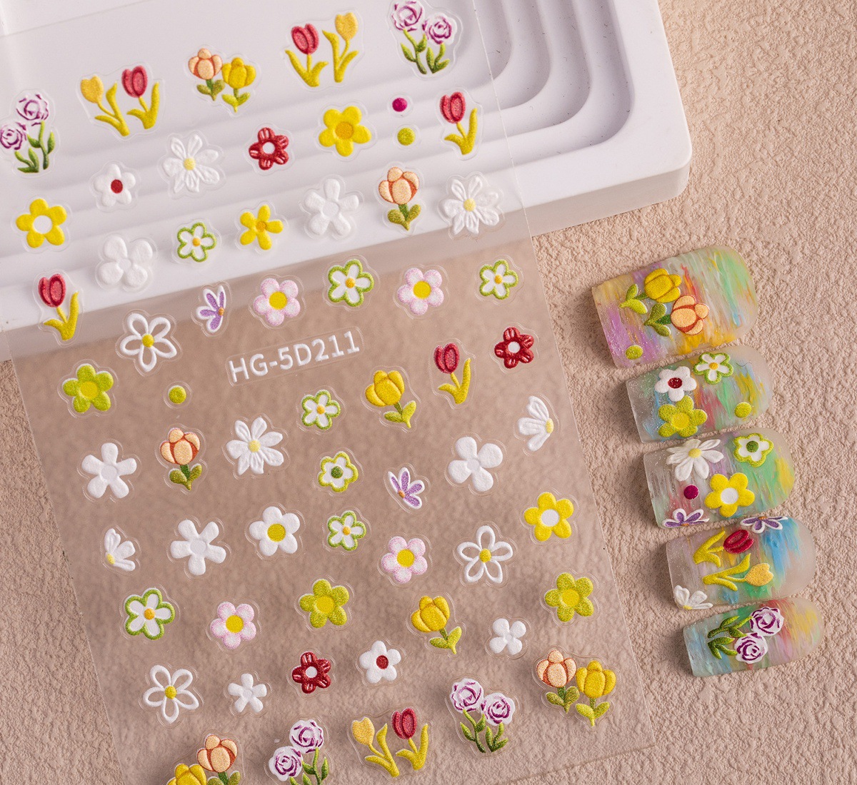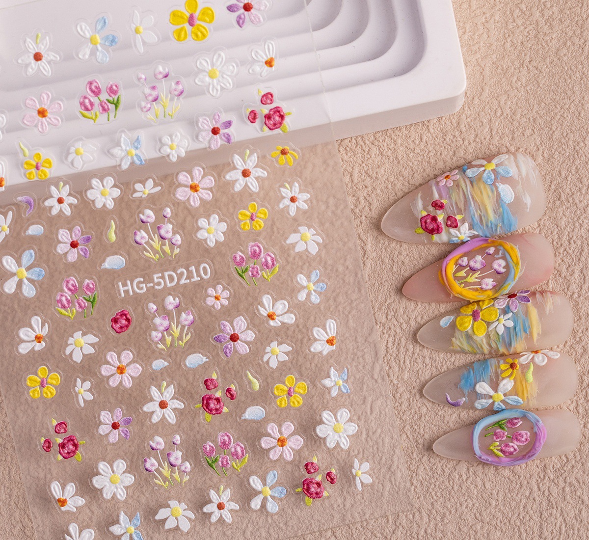 Новый маникюр весенний день красочный маленький полевой цветок рельефная наклейка для ногтей романтическая масляная живопись свежая простая милая наклейка для ногтей