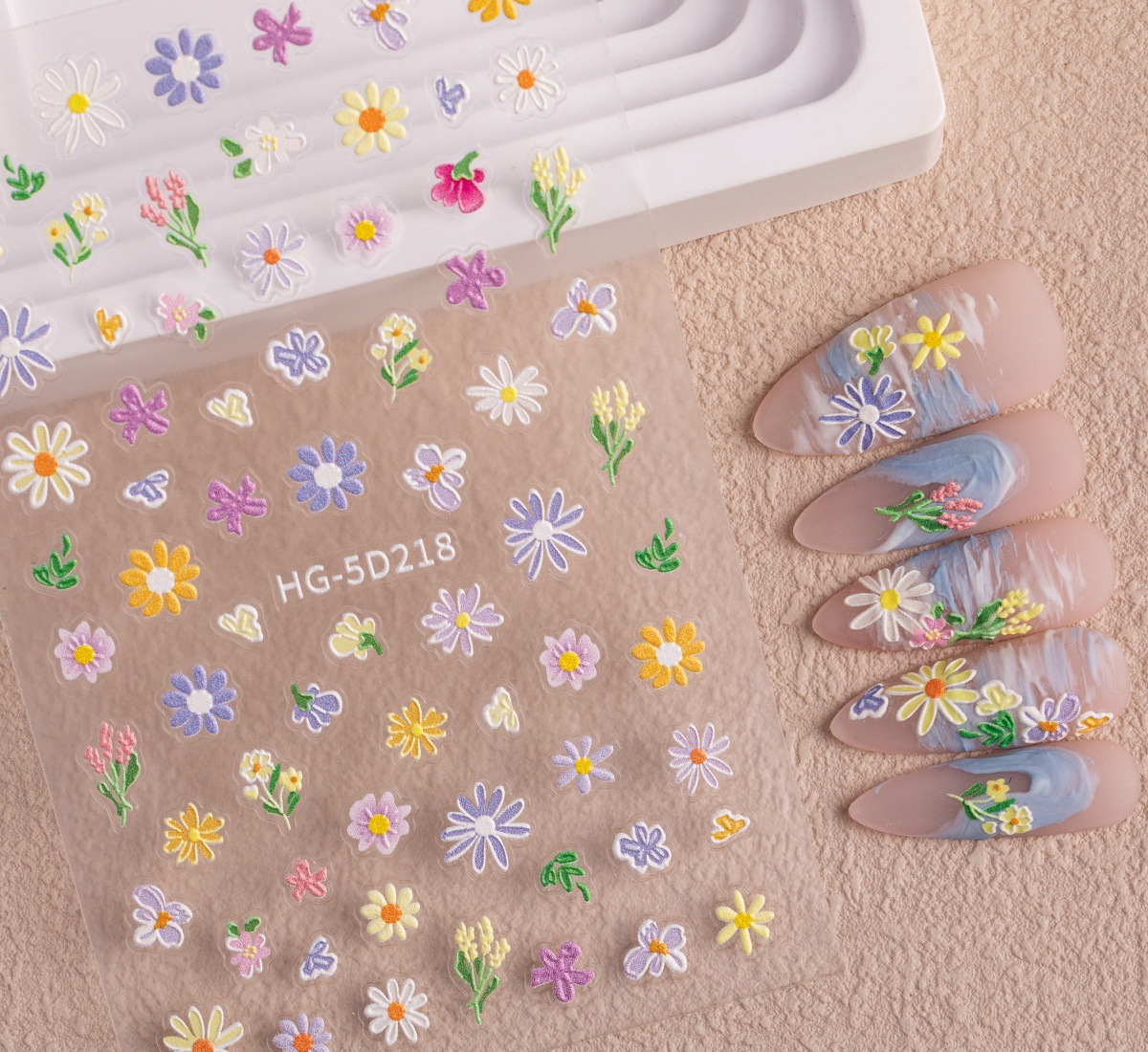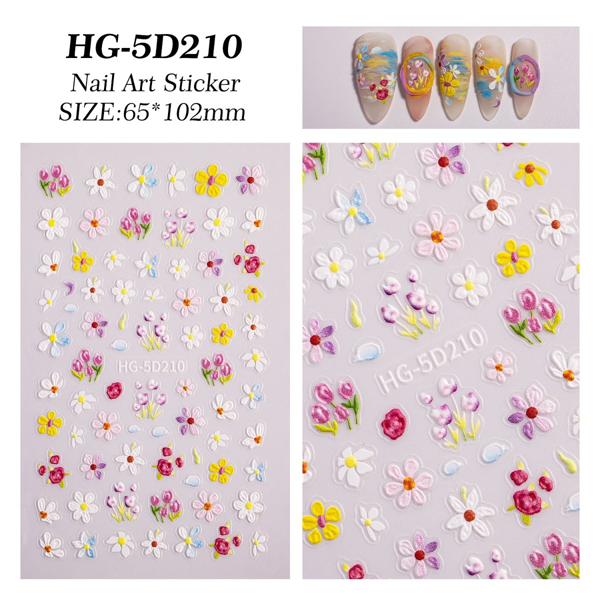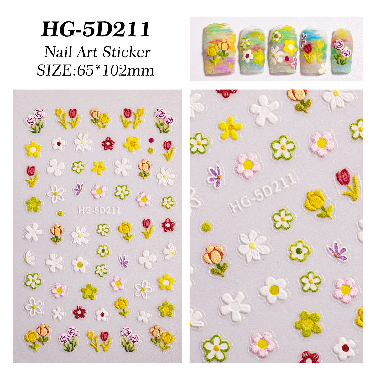 Новый маникюр весенний день красочный маленький полевой цветок рельефная наклейка для ногтей романтическая масляная живопись свежая простая милая наклейка для ногтей