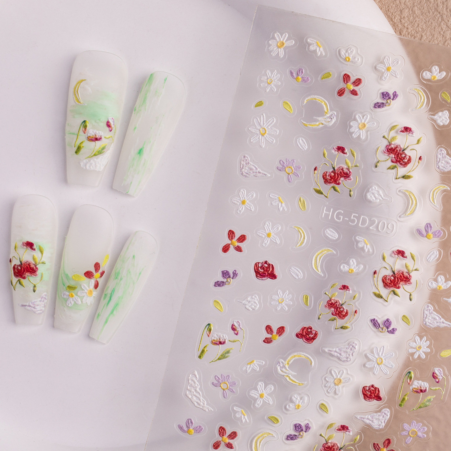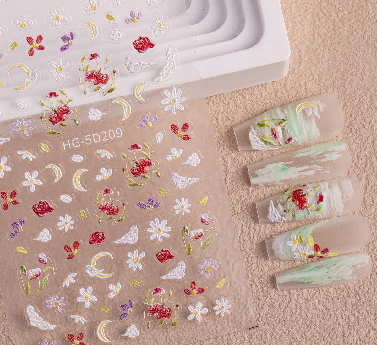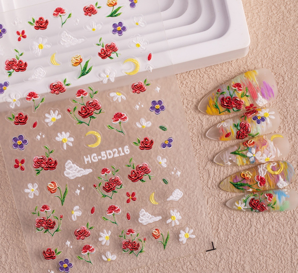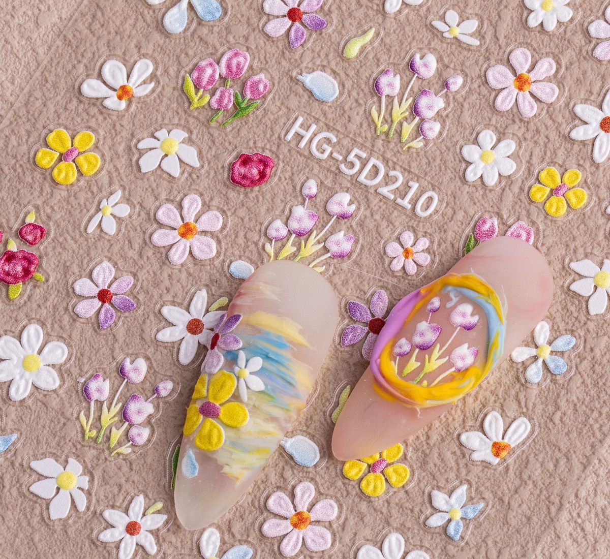 Новый маникюр весенний день красочный маленький полевой цветок рельефная наклейка для ногтей романтическая масляная живопись свежая простая милая наклейка для ногтей