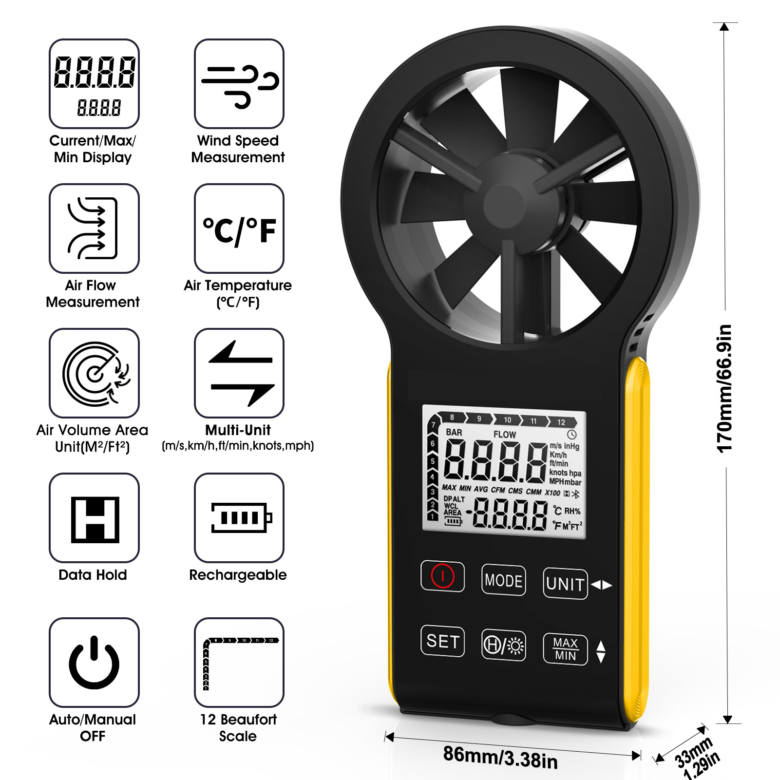 Трансграничный ручной анемометр, высокоточный ветрометр, анемометр объема ветра, измерительный прибор для измерения температуры ветра