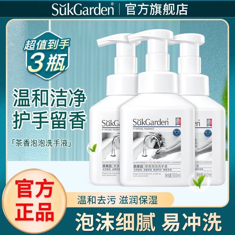 Мыло для рук с ароматом чая из овощного сада, 3-в-1, с насадкой-помпой, свежий чайный аромат, глубоко очищающее, нежное, увлажняющее, с длительным ароматом