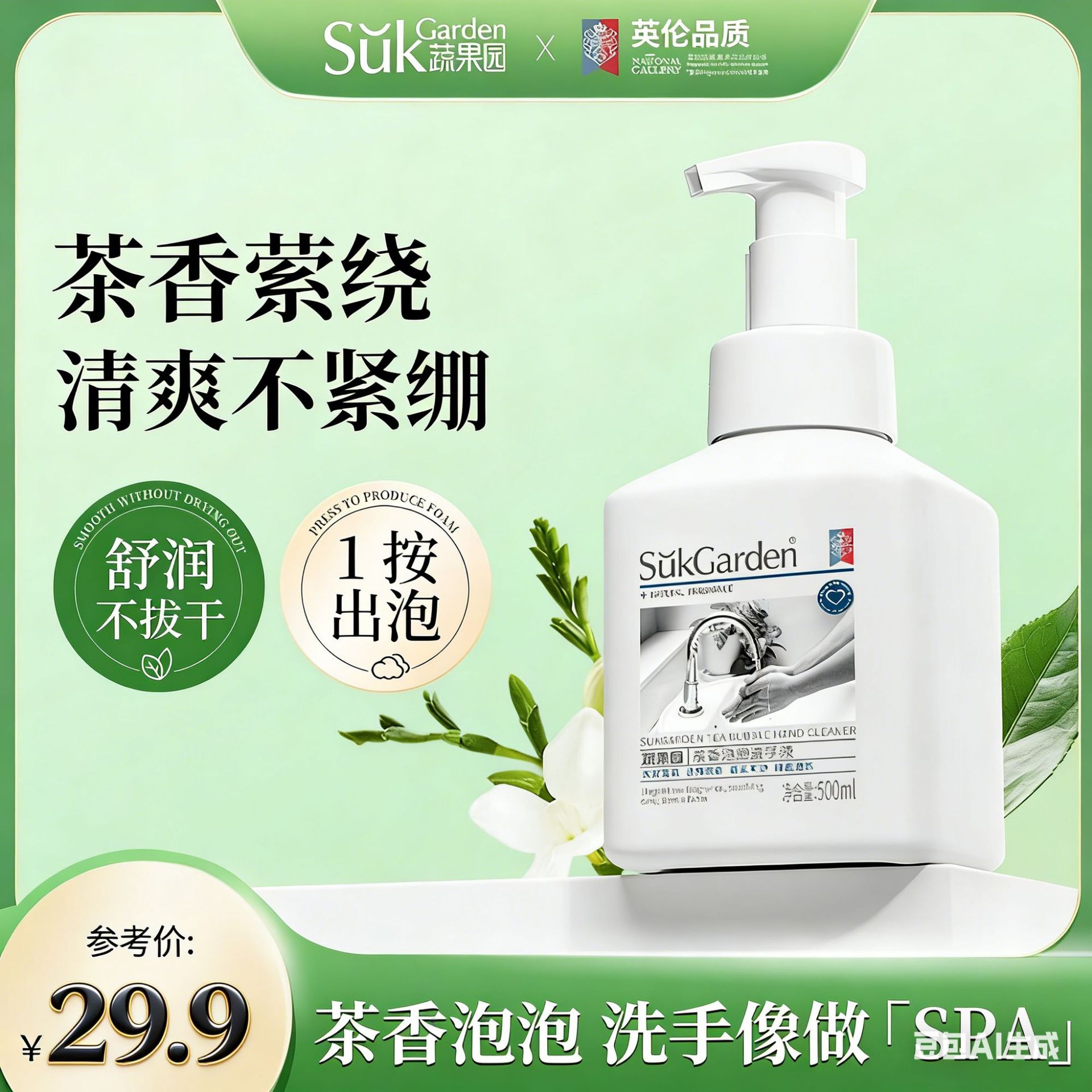 Дезинфицирующее средство для рук из пены с ароматом чая из огорода