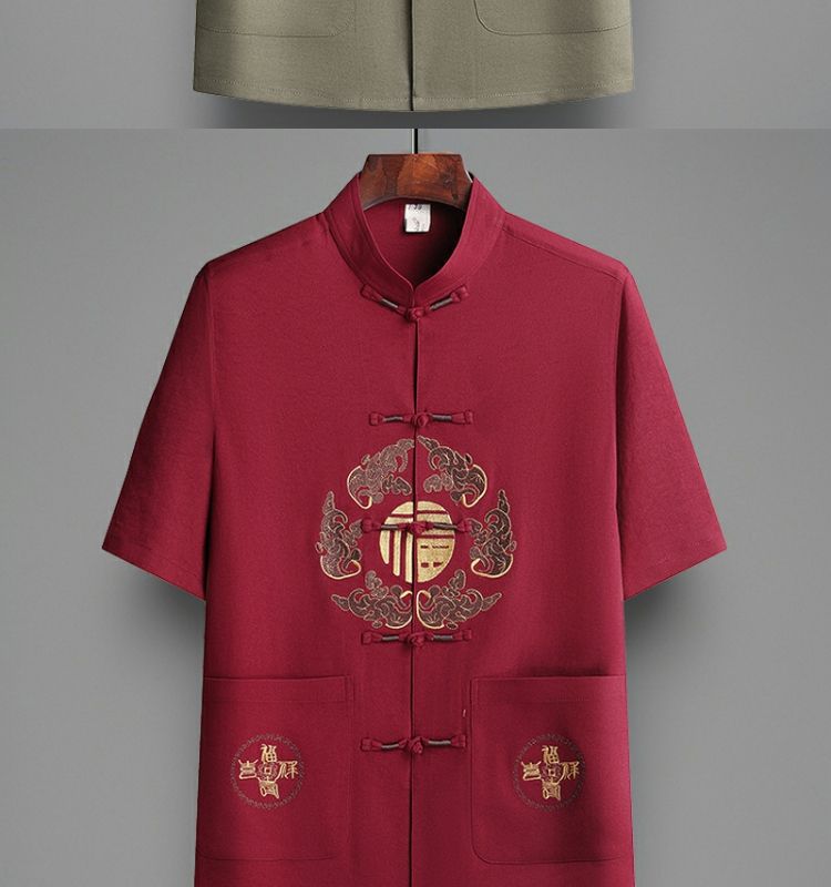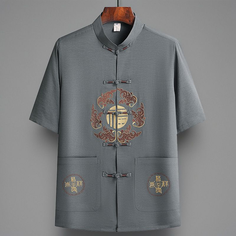 Костюм Тан, мужские летние топы из ледяного шелка среднего и пожилого возраста с короткими рукавами, китайский стиль, вышивка, ретро, повседневный свободный наряд для папы, папы