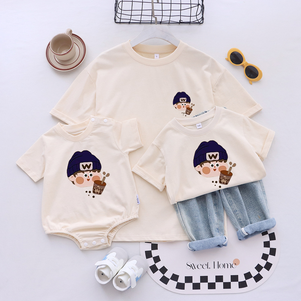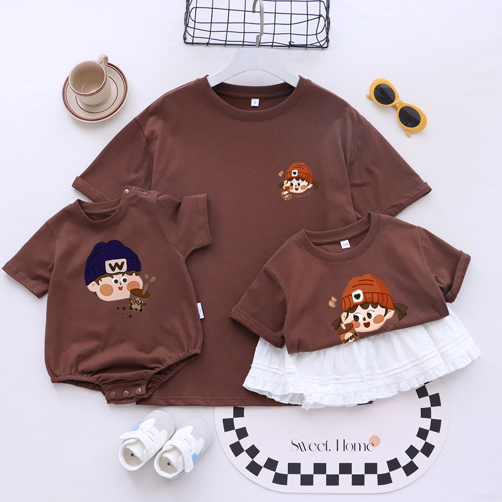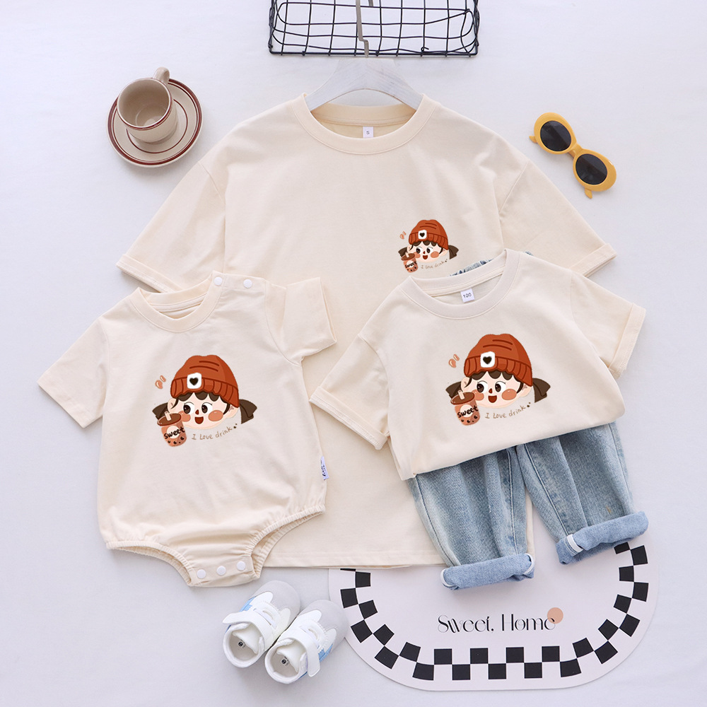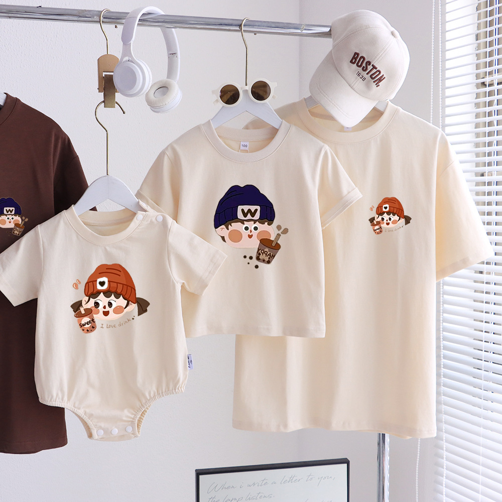 2025 семейная одежда, высококачественная футболка с короткими рукавами, семейная одежда для трех или четырех человек, одежда для фото в стиле k, для матери и ребенка, для мамы и дочки, для ребенка