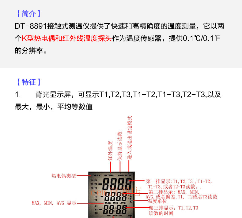 Многоканальный термометр CEM Huashengchang для измерения температуры DT-8891